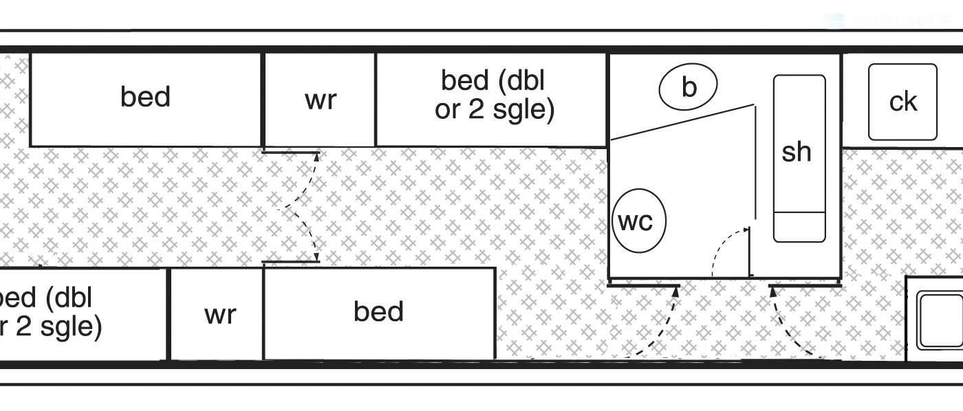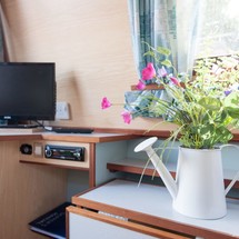 The living area of this houseboat consists of 3 cabins and accommodates 8 people. A shower is at the guests' disposal and there are 2 toilets on board.