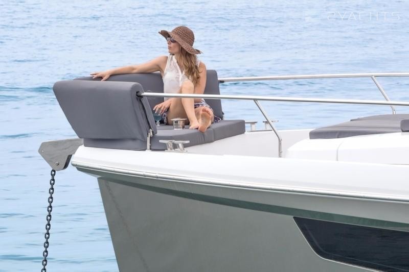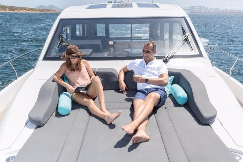 The C530 was designed with a multifunctional roof structure to give the saloon a feeling of freedom and lightness. The front part is built with an openable panoramic roof, which transforms the large living space in the saloon into an outdoor loft. The aft cockpit is protected by a wide sun roof, which can be opened up to more than two meters. The engine options are IPS700 & IPS800 with a 3 cabin layout.