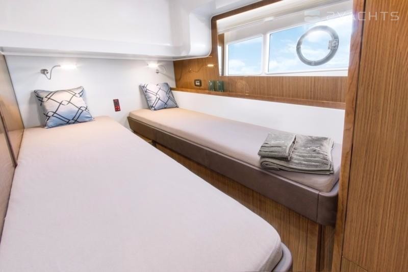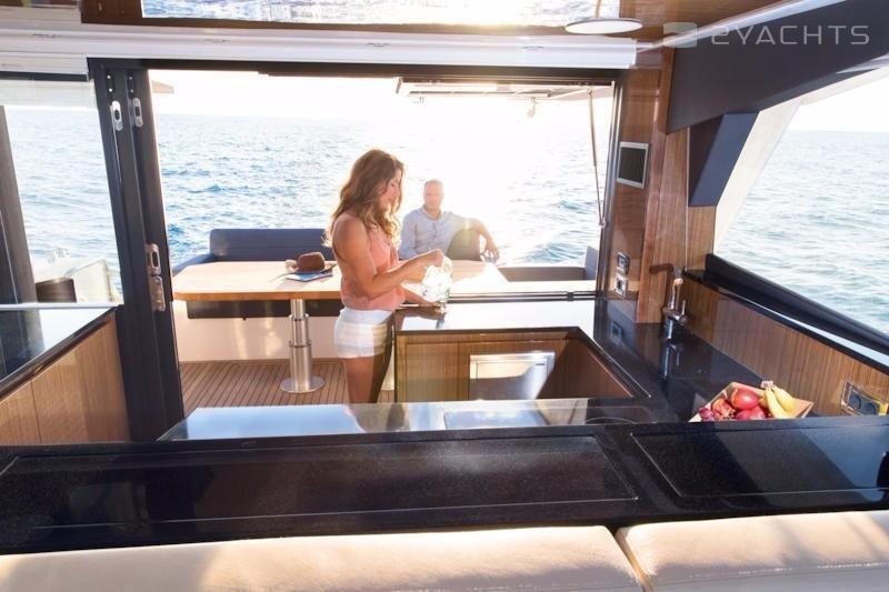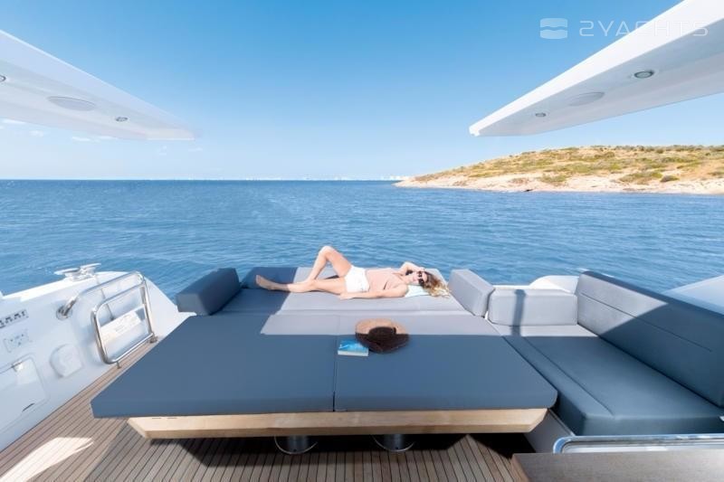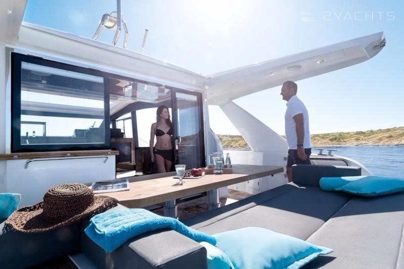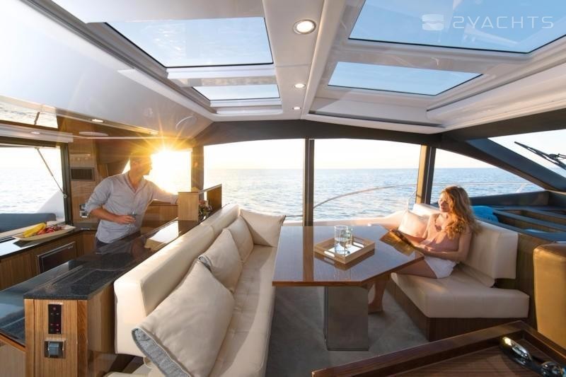 El diseño de la C530 incluye un techo multifuncional para proporcionarle una sensación de libertad y luminosidad. Su techo panorámico de la parte delantera, convierte la gran sala de estar en un loft al aire libre. El puesto de mando en popa está cubierto por un amplio techo solar con una apertura de más de 2 metros. En este diseño de tres cabinas cabe la posibilidad de mejorar los motores por unos IPS700 o IPS800.