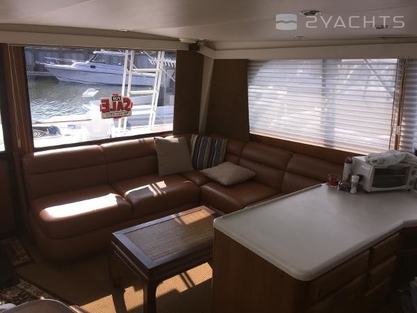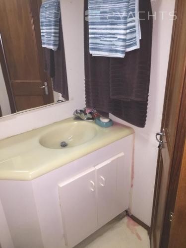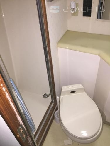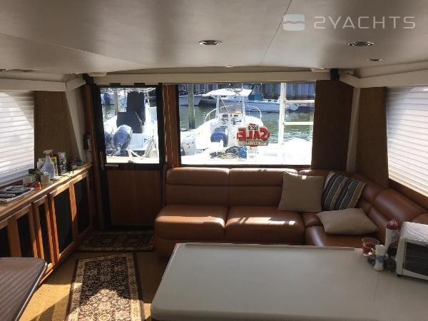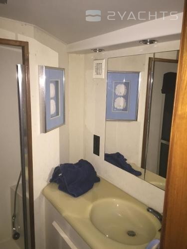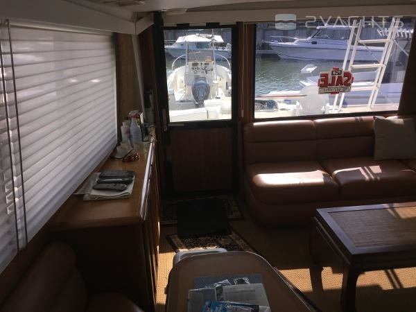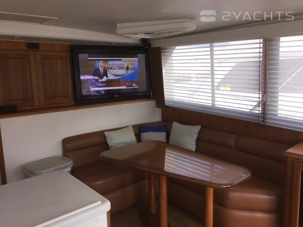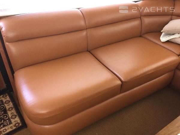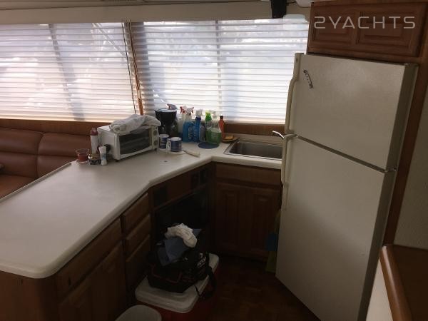 Nice layout with up kitchen, full-size refrigerator, 2 burner stove, Microwave, garbage disposal in the sink. New(this year) hot water heater. Salon furniture, brown leather color in good shape, Bose surround a sound audio system thru out the boat, 40" TV and Direct TV antenna, CD and DVD players.