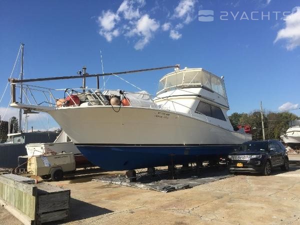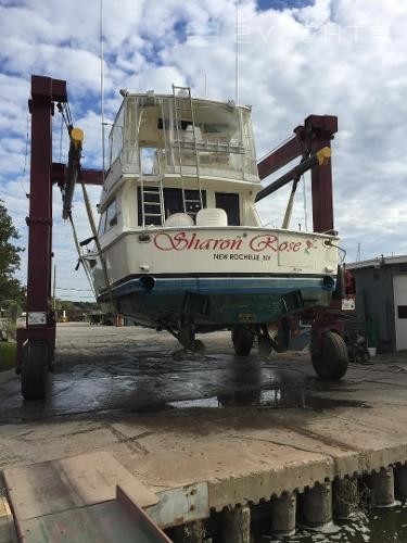 The 2 most important things when buying a used boat are the Hull and the Drivetrain. This boat is pulled out of the water, here in New York in November, Shrink wrapped, winterized and stored on the hard till May. Freezing temperatures here would show any bad spots in the hull. The engines are 8V92 single wet Turbo Detroits with 1500 original hours. I've owned the boat for 10 years. As a mechanic by trade, I've kept them running sweet with proper maintenance. Transmissions are the Italian version of B &H. I've changed the filters and oil twice since I've owned it. Shaft packings are new, bearings tight and props in good shape. Rudder shafts have been repacked and are watertight. Onan 12k diesel generator the same hours as engines. 3 a/c units work perfectly.