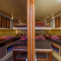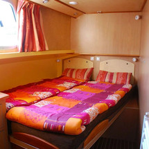 • Four double cabins (on request with two or three single beds possible) with clothes rack and storage