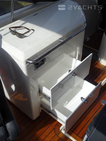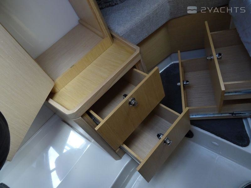 Additional accessories:power-assisted hydraulic steeringinverteranchoranchor winchflap trimbiminiharbor coverwinter coveradditional batteryskier’s hookwindscreen wipersshore powerstereo radiolarge hot water heater (inverter or shore power supply)Suzuki 6 HP backup engineteakcabin curtains