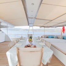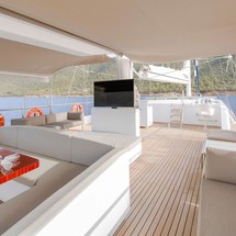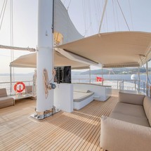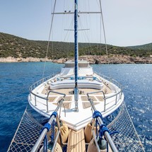 The Wall, which is the incomparable option of the exciting blue cruise experience, makes you feel special as never before. Its white wooden look creates a perfect match with the blue. It makes you enjoy to repletion the pleasure of charming waters any hour of the day. It’s splendor with its length and width befits with the blue cruise.