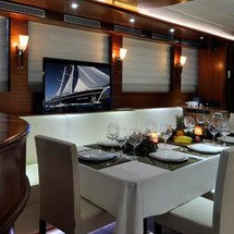 The 36 METERS High Deluxe Yacht Dolce Mare comfortably accommodates 12 guests with her 2 Master, 1 Triple, 3 Double Cabins and is operated by 6 experienced and dedicated crew (Captain, Chef, 3 Deckhands, Hostess). DolceMare is available for charter in Turkey and Mediterranean in summer (May to October). DolceMare toys and tenders include VHF, depth sounder, Radar, GPS, Compass, satellite communication equipment, All navigation Equipment– contact us to know the full list.