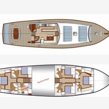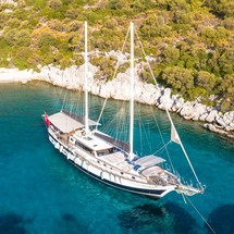 Grand Sailor is a high-quality Gulet, 24 meters in length, built in 2019. There are modern and spacious cabins, specially designed with hall and deck. She accommodates 10 guests in 2 Master, 3 Double Cabins, Each has a private shower and toilet. All yachts, including cabins, are air-conditioned. there are also extra jacuzzi in master cabins if and there are separate cabins for the crew who accompany the cruise. There is a fully equipped kitchen, an indoor and outdoor dining area, and an air-conditioned lounge. There is a TV, DVD and music system in the saloon and all cabins. There is also a large sun deck with enough sunbathing mats for all.