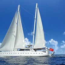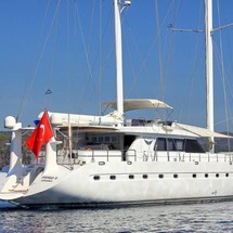 The 35 MT / 114'10" FT Deluxe Yacht Angelo II comfortably accommodates 14 guests with her 1 Master, 6 Double Cabins and is operated by 5 experienced and dedicated crew. AngeloII is available for charter in Turkey and Mediterranean in summer (May to October). AngeloII toys and tenders include Computer, Tv-Set, VCR, DVD-Player, FM-Radio– contact us to know the full list.