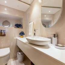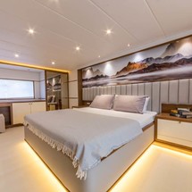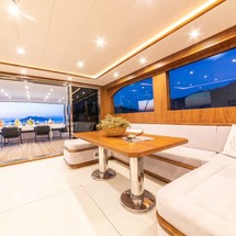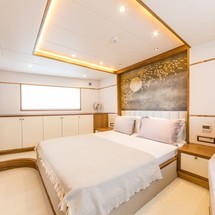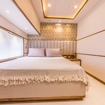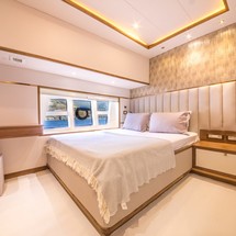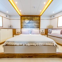 Motoryacht Floki's interior layout sleeps up to 9 guests in 4 cabins, including 4 double cabins. Timeless styling, beautiful furnishings and sumptuous seating feature throughout to create an elegant and comfortable atmosphere.
