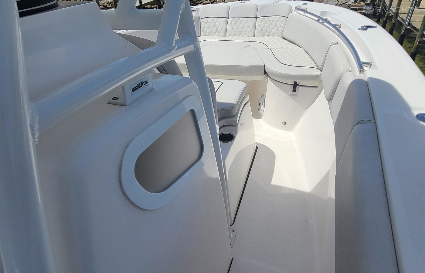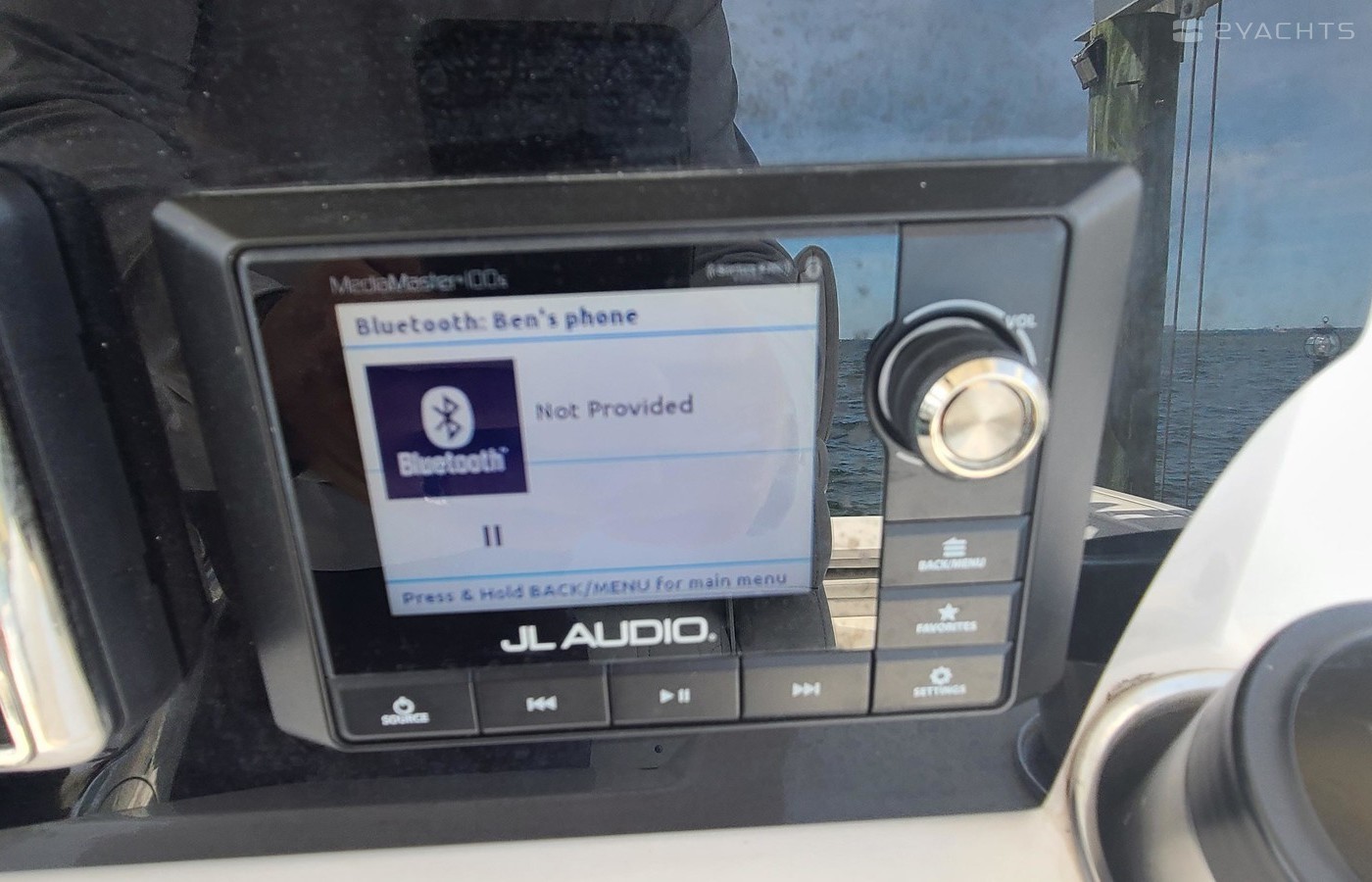 JL audio 12 speaker sound system with 2 12 inch subwoofers. Large built in phone mount on helm with wireless charging. 5 spreder lights. 2 live wells one aquarium style. Two large in floor fish box with massurators.