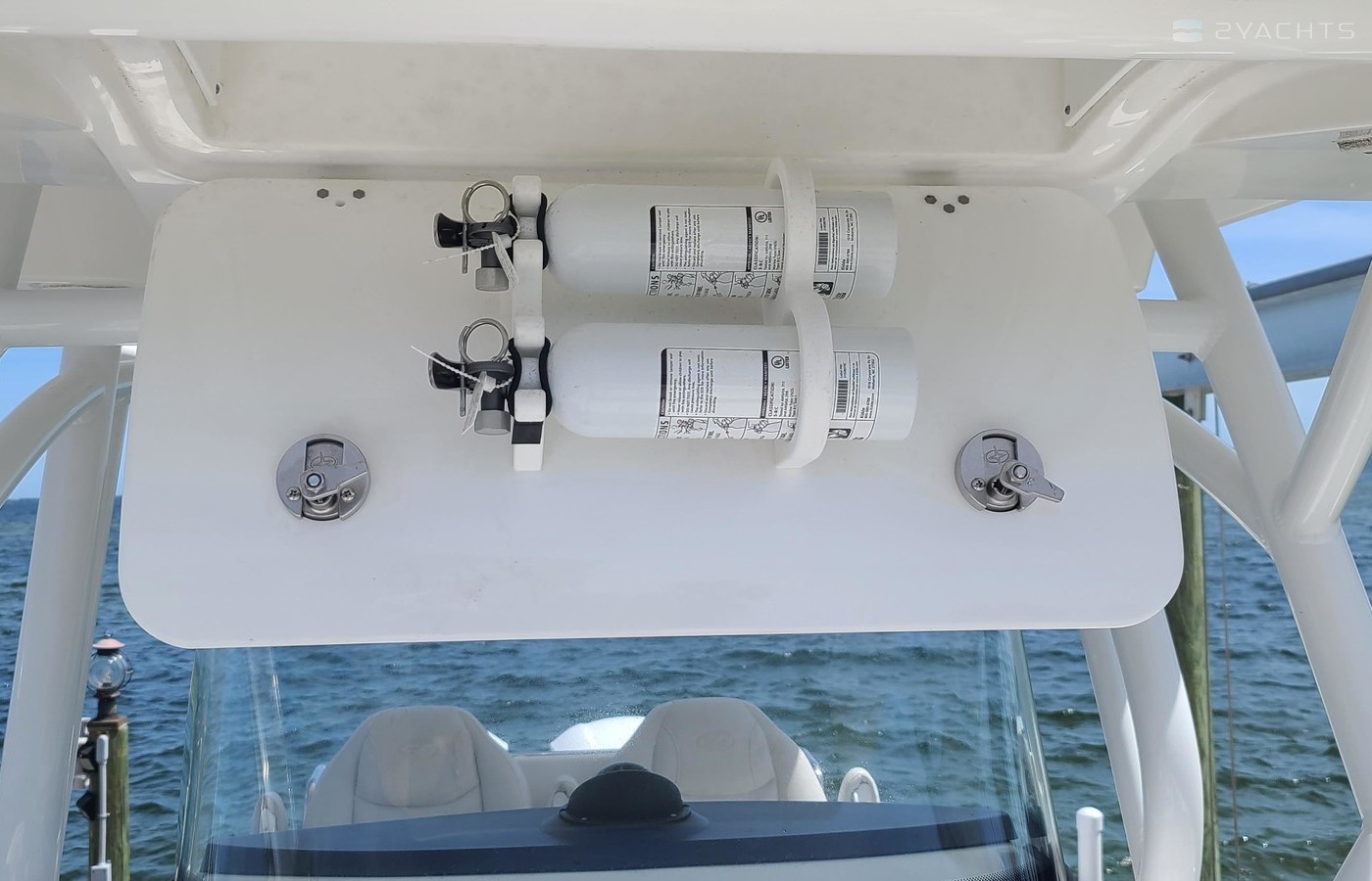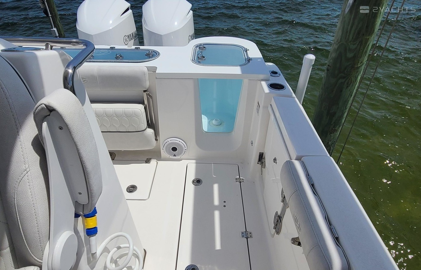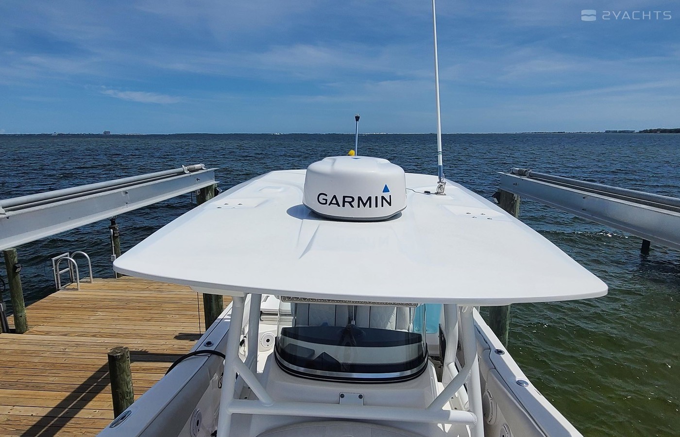 Meet GRITTY a 288 Commander, equipped with everything you need for some serious offshore fishing action and all of those trips taken with the family. I call it the reverse Mullet, party in the front and business in the back. Has everything you need to fish 60 miles off shore from the Helm back and all the comfort your significant other can handle in the front to include a full bow shade for the hot days out. The boat has been fully ceramic coated inside and out and holds a lifetime warrenty on the interot seats for fading rips and so on. To be transfered by buyer. Engines have warrenty thru yamaha until 9/25/2023