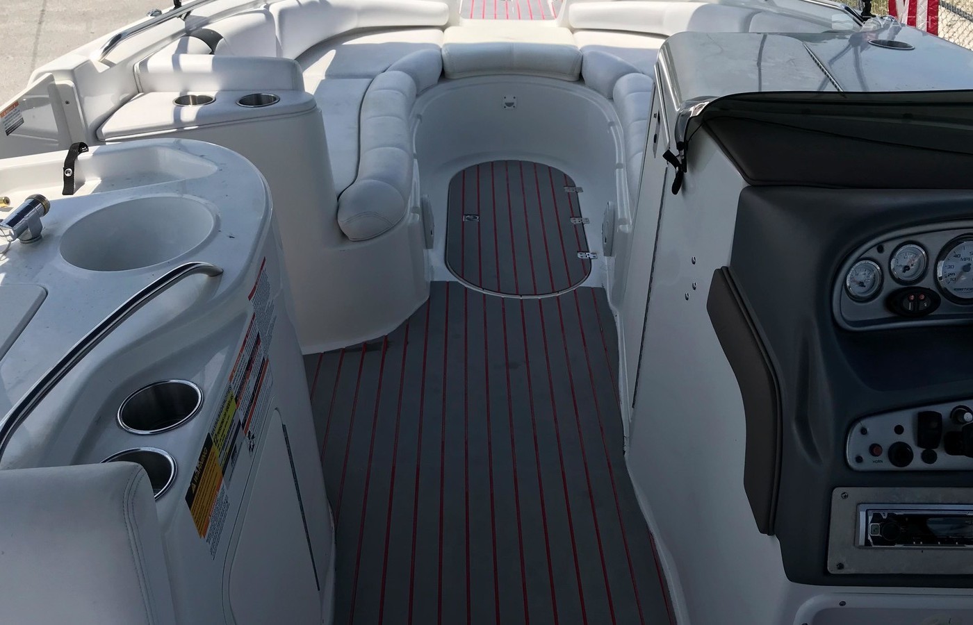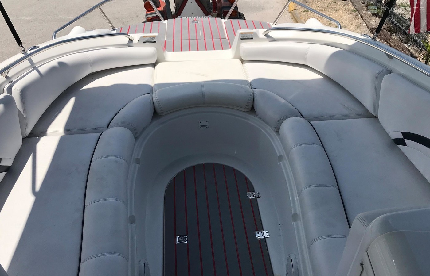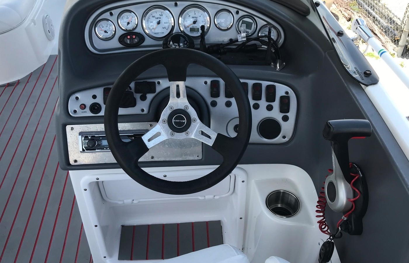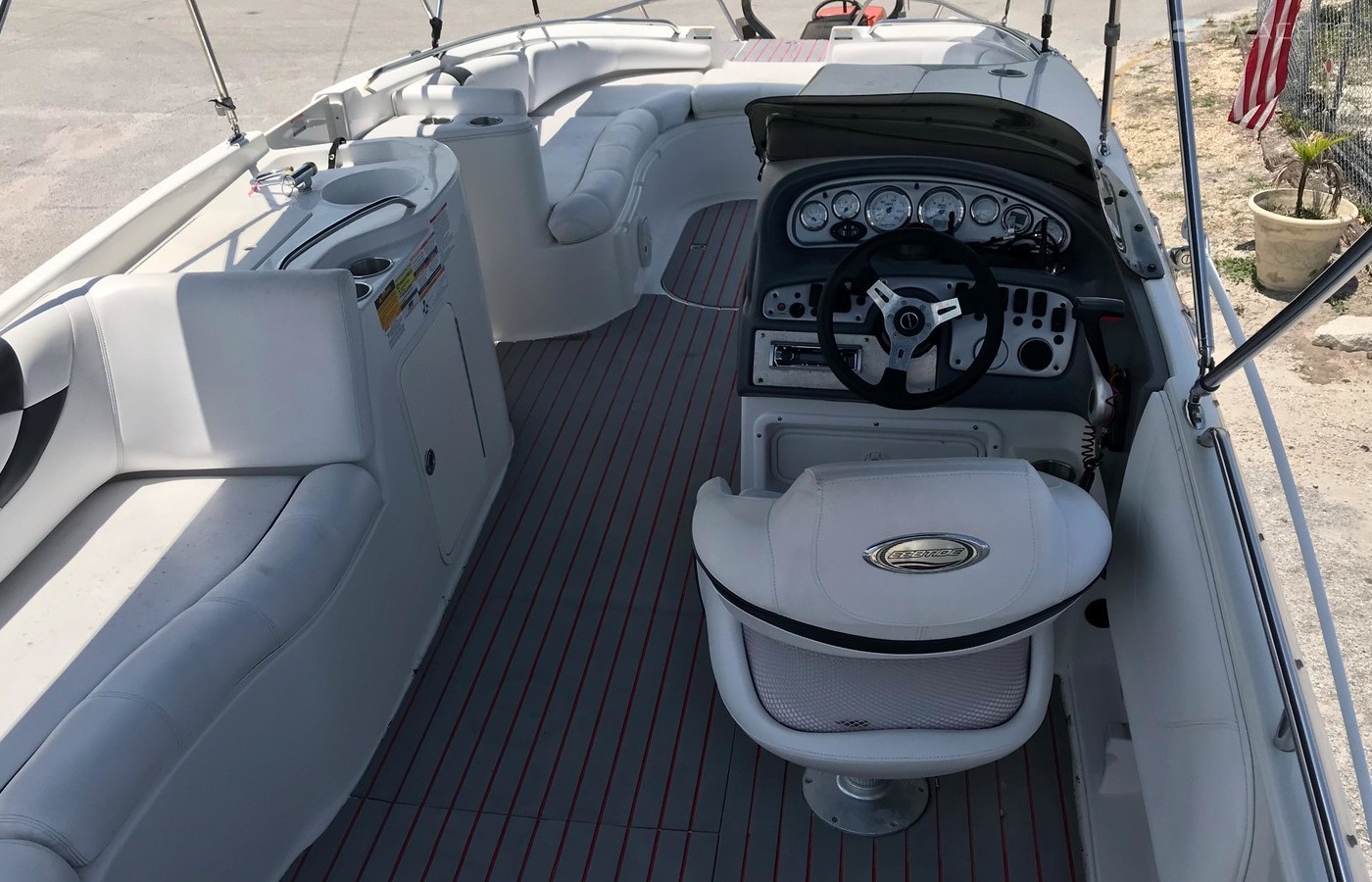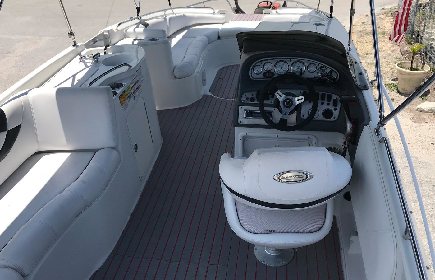 One owner, only 241 hours on this pristine Yamaha 250 HP FOUR STROKE, saltwater series engine with SS prop and hydraulic steering. POWER POLE, sea deck on fiberglass floor, DOUBLE BIMINI TOPS , for full shade, potti in the console, tons of storage, depth finder, GPS combo unit, AND MUCH MORE !!!!!! Comes with nice aluminum trailer with brand new tires, Why pay $90K for a new one??