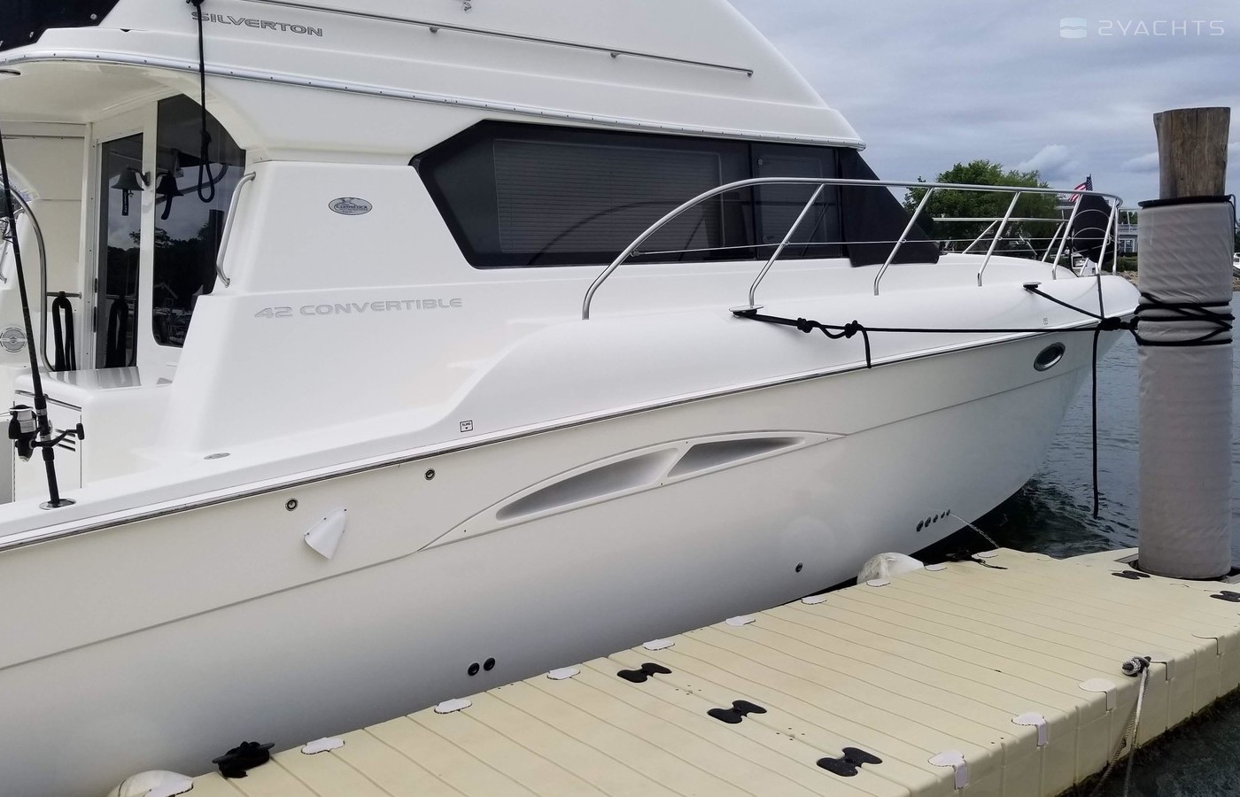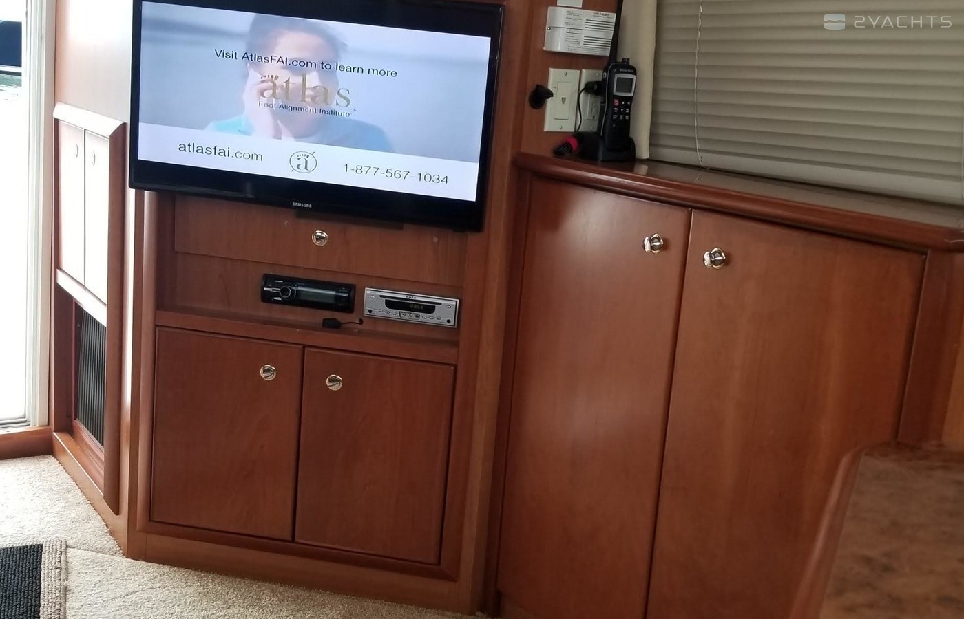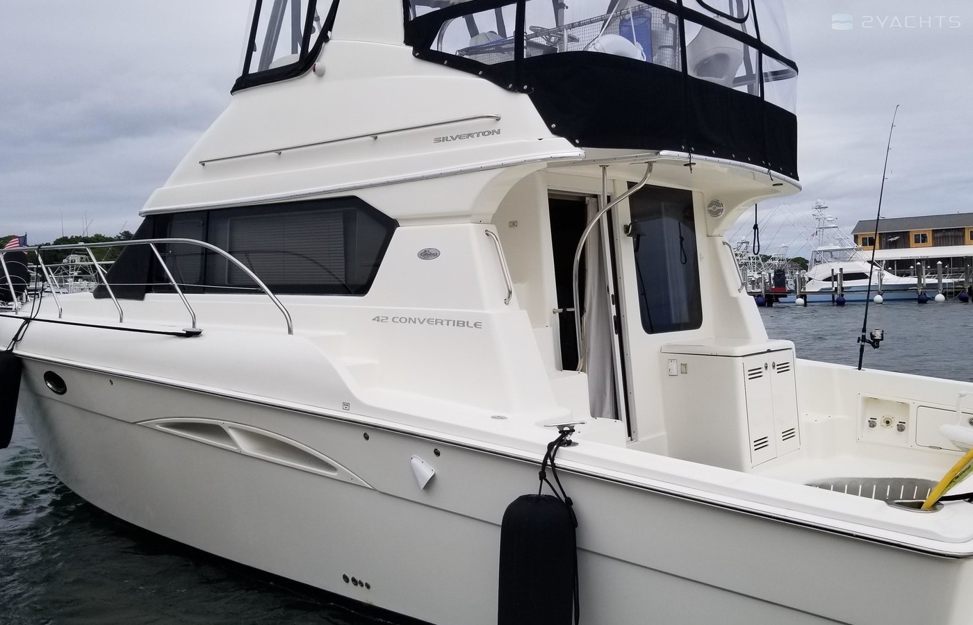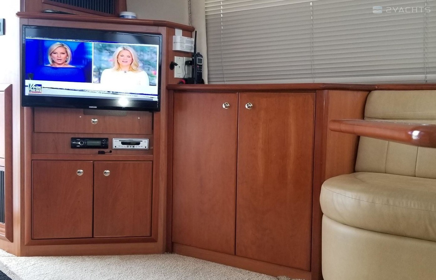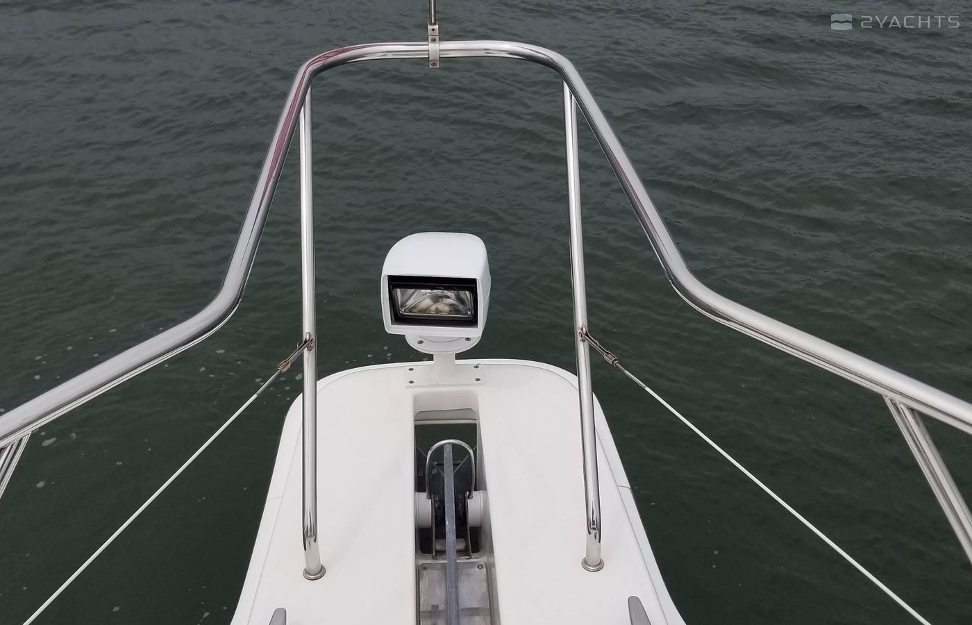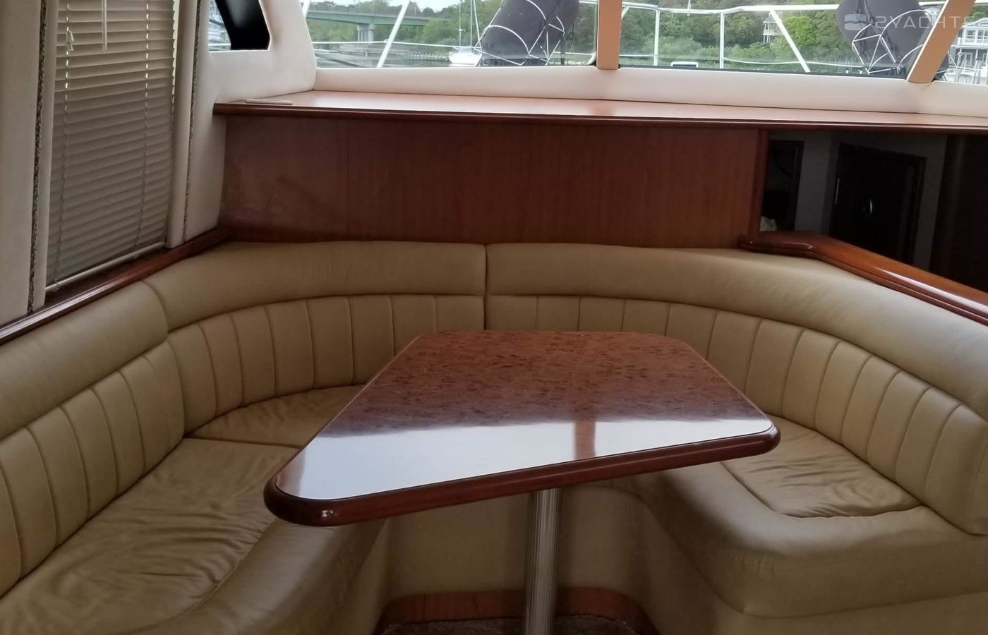 The beamy 42 Convetible utilizes space to a remarkable degree, with ample amenities and storage contributing to the well-being of owners and guests, alike. Consider the 42 Convertible's two luxurious double-berth staterooms served by a split-head and stall shower arrangement. And the enormous booth settee wrapping a solid cherry table angled to face the convertible sofa and entertainment center. In the 42 Convertible, all combine in a superbly styled cabin perfect for conversation or more lively demonstrations of satisfaction. The impressive galley is integrated into the layout. You will also be amazed by the generous expanse of cherry wood, which warms and enriches the interior. Topside on the 42 Convertible, the captain will appreciate an efficient helm station and the power of twin Yanmar Deisels engines. And all will be impressed by her smartly restyled exterior lines.