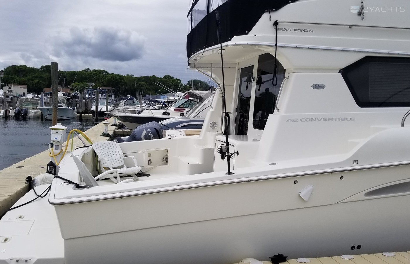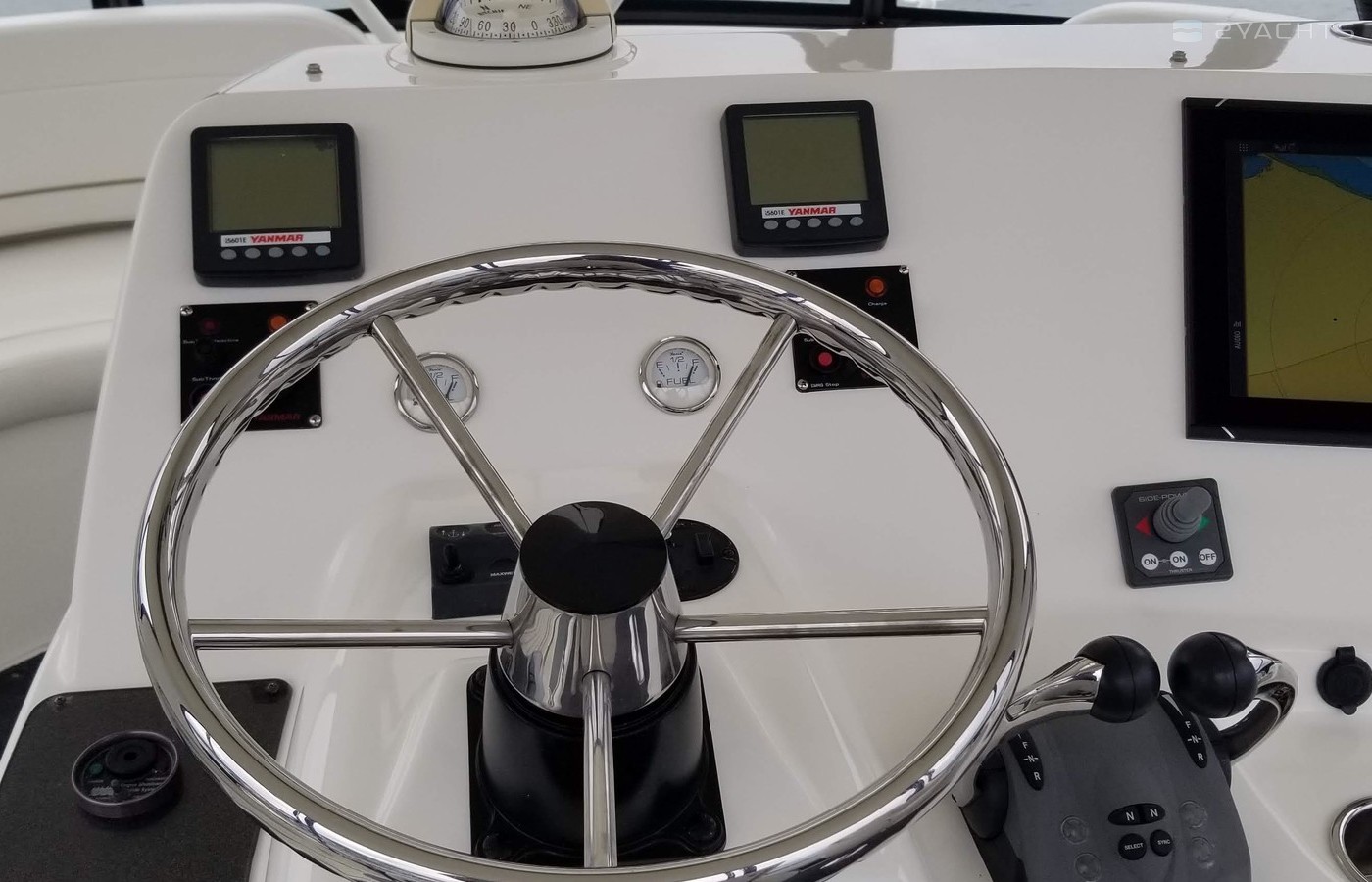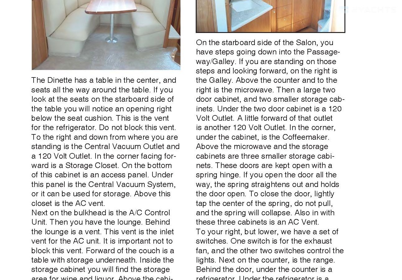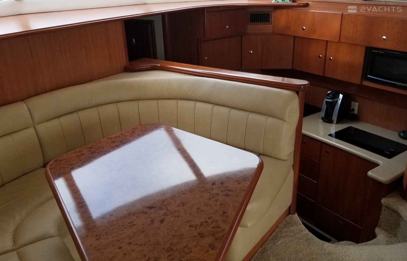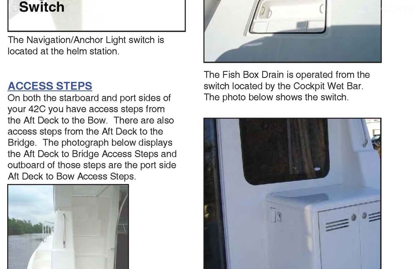 The beamy 42 Convetible utilizes space to a remarkable degree, with ample amenities and storage contributing to the well-being of owners and guests, alike. Consider the 42 Convertible's two luxurious double-berth staterooms served by a split-head and stall shower arrangement. And the enormous booth settee wrapping a solid cherry table angled to face the convertible sofa and entertainment center. In the 42 Convertible, all combine in a superbly styled cabin perfect for conversation or more lively demonstrations of satisfaction. The impressive galley is integrated into the layout. You will also be amazed by the generous expanse of cherry wood, which warms and enriches the interior. Topside on the 42 Convertible, the captain will appreciate an efficient helm station and the power of twin Yanmar Deisels engines. And all will be impressed by her smartly restyled exterior lines.