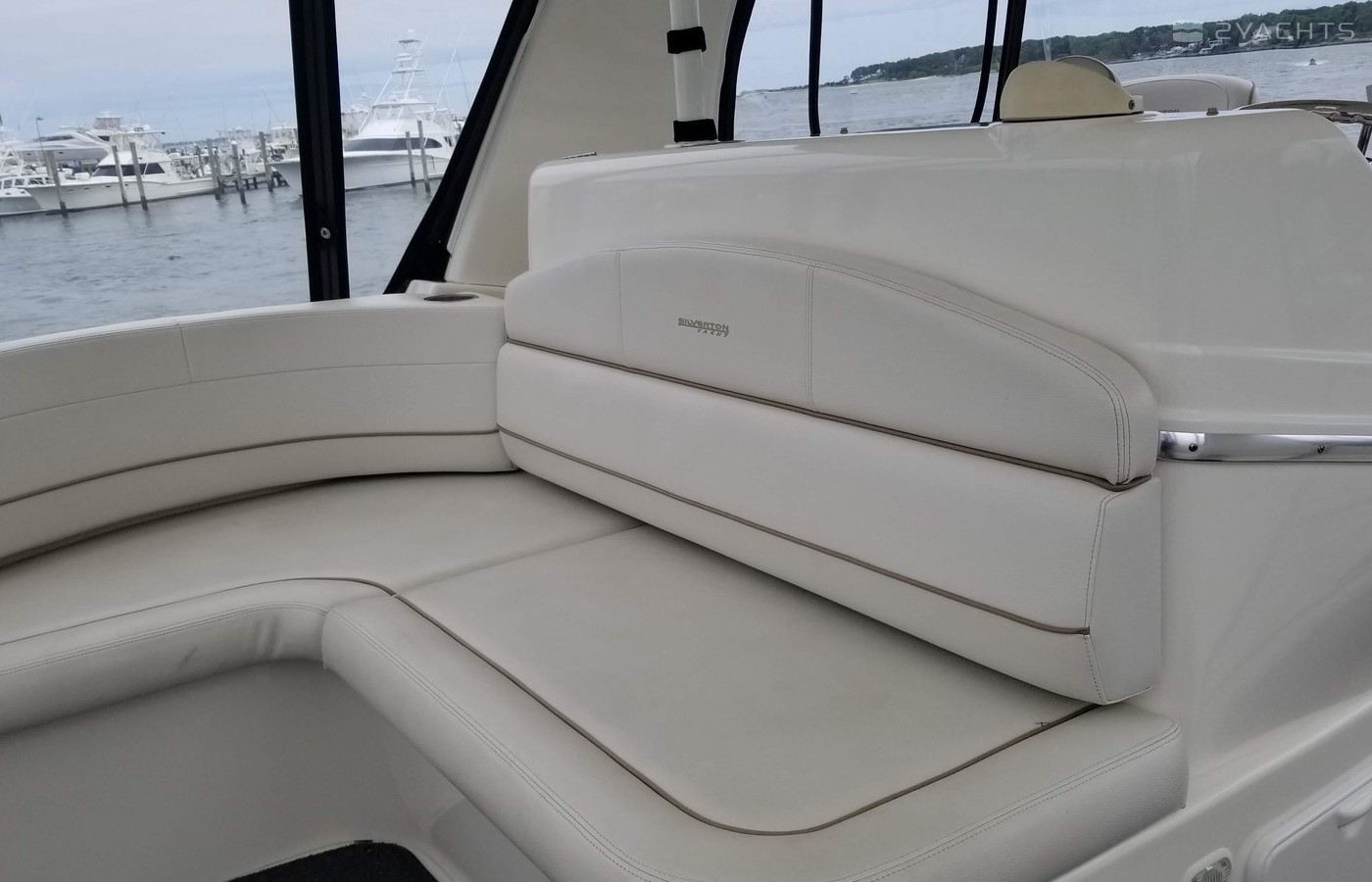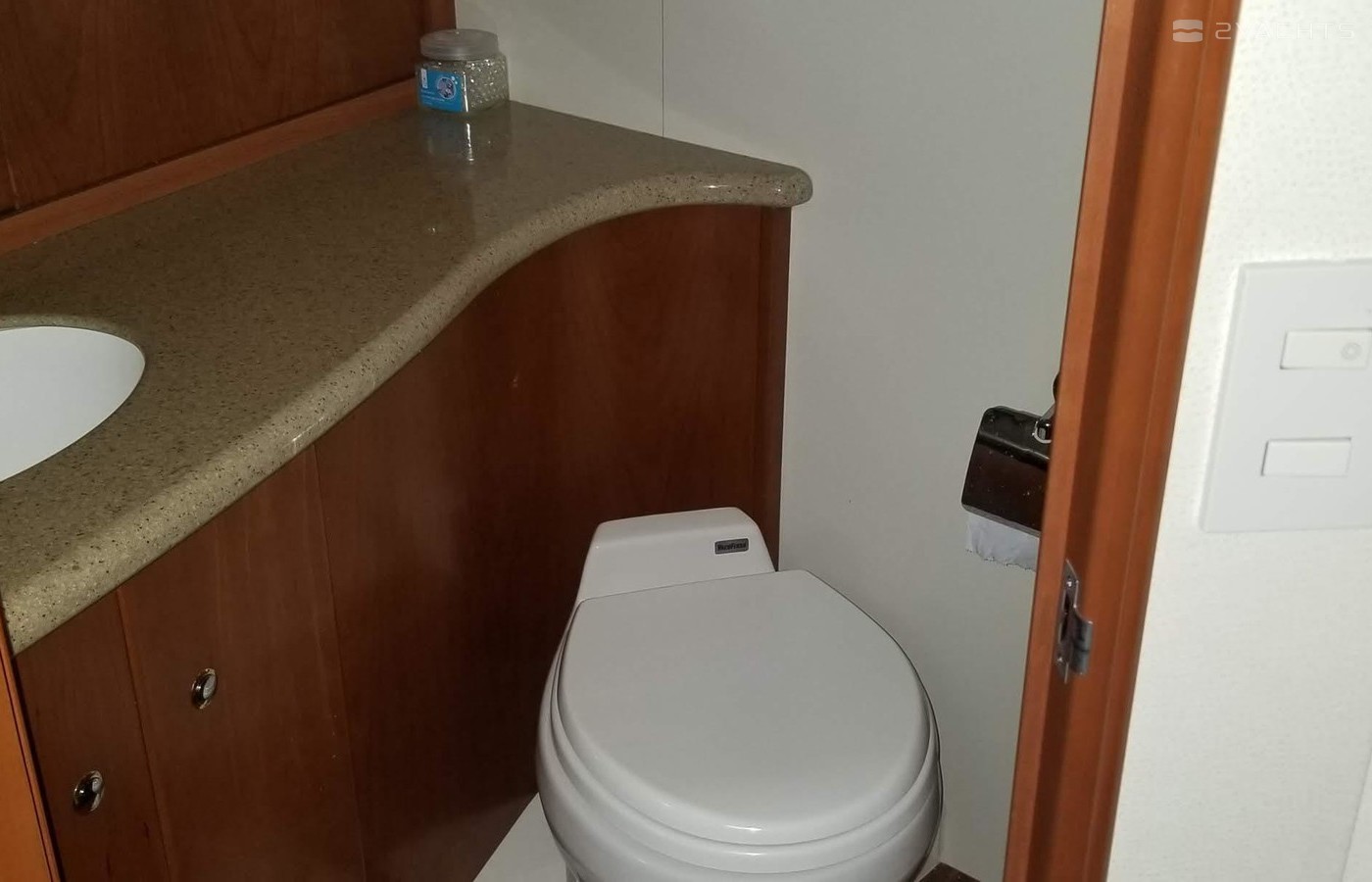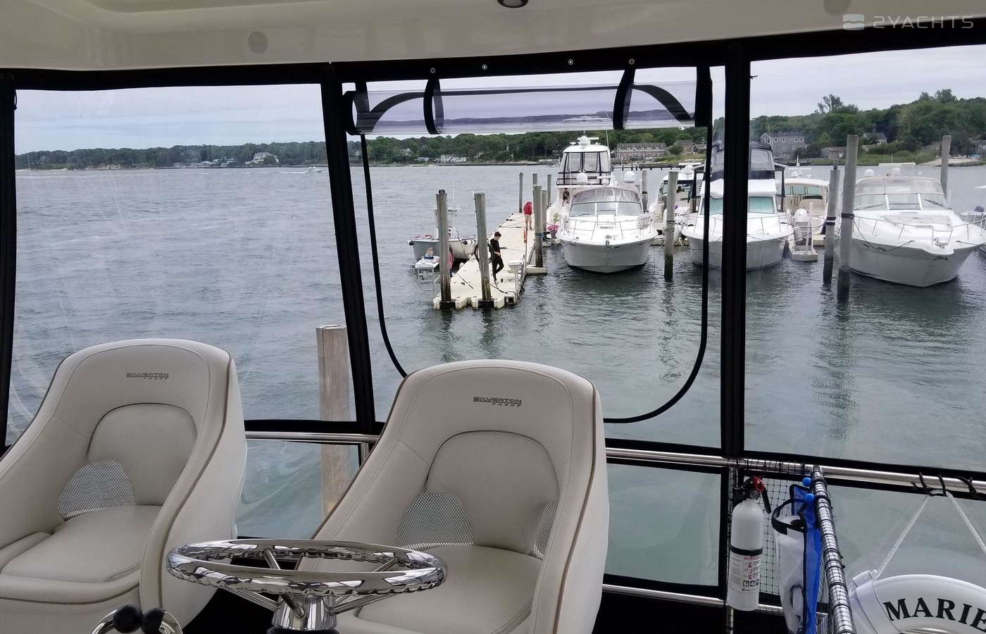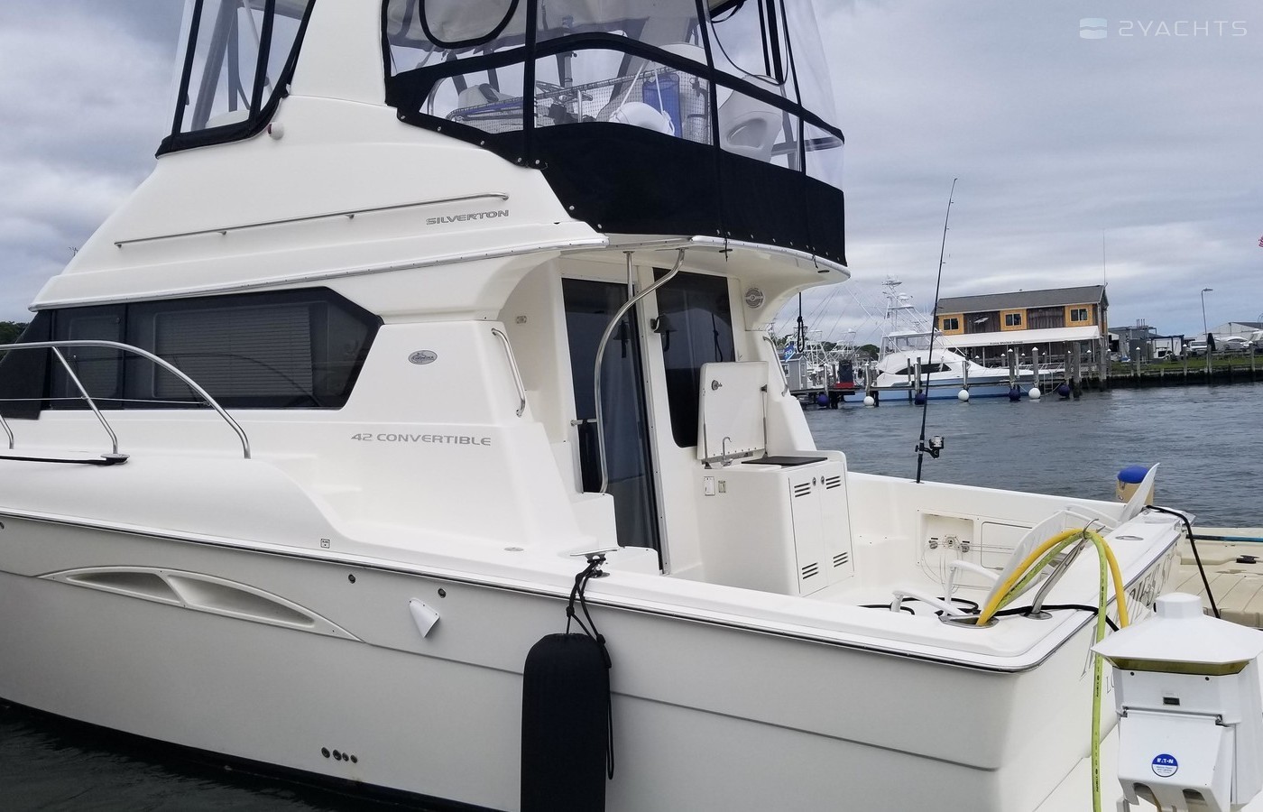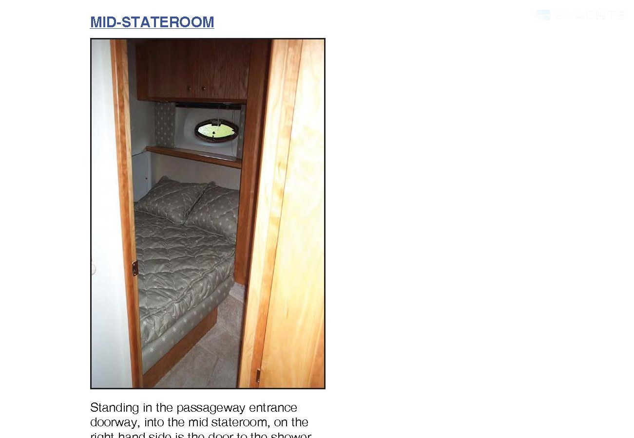 The beamy 42 Convetible utilizes space to a remarkable degree, with ample amenities and storage contributing to the well-being of owners and guests, alike. Consider the 42 Convertible's two luxurious double-berth staterooms served by a split-head and stall shower arrangement. And the enormous booth settee wrapping a solid cherry table angled to face the convertible sofa and entertainment center. In the 42 Convertible, all combine in a superbly styled cabin perfect for conversation or more lively demonstrations of satisfaction. The impressive galley is integrated into the layout. You will also be amazed by the generous expanse of cherry wood, which warms and enriches the interior. Topside on the 42 Convertible, the captain will appreciate an efficient helm station and the power of twin Yanmar Deisels engines. And all will be impressed by her smartly restyled exterior lines.