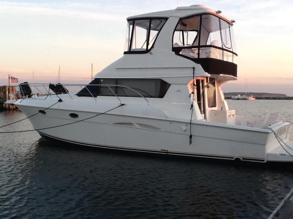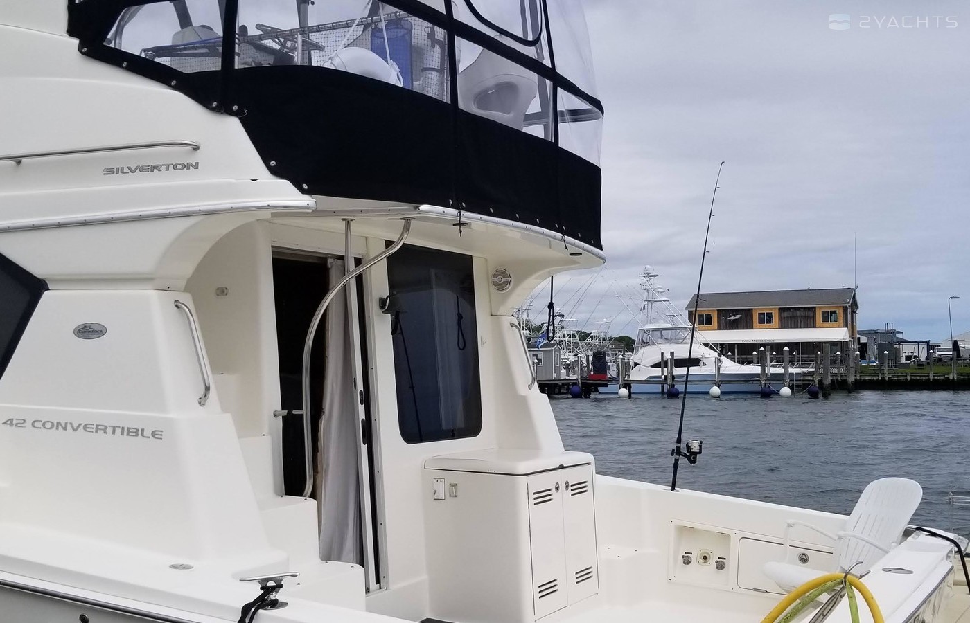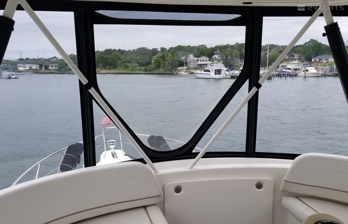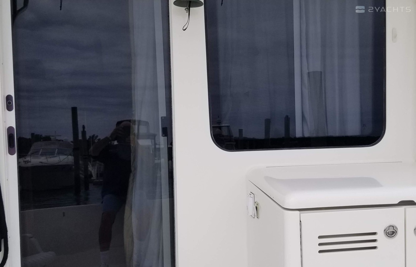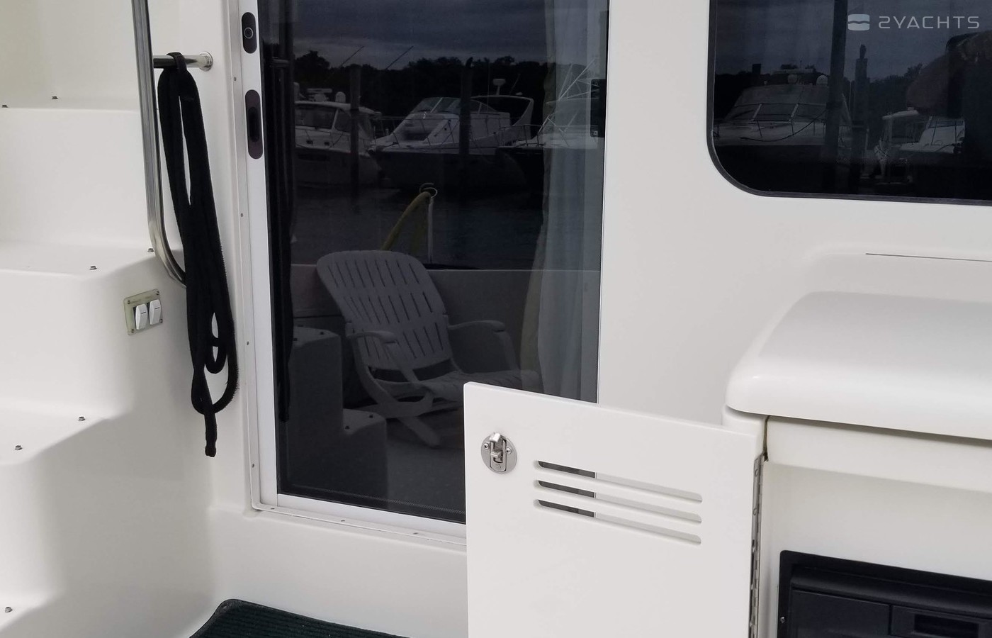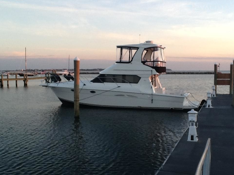 The beamy 42 Convetible utilizes space to a remarkable degree, with ample amenities and storage contributing to the well-being of owners and guests, alike. Consider the 42 Convertible's two luxurious double-berth staterooms served by a split-head and stall shower arrangement. And the enormous booth settee wrapping a solid cherry table angled to face the convertible sofa and entertainment center. In the 42 Convertible, all combine in a superbly styled cabin perfect for conversation or more lively demonstrations of satisfaction. The impressive galley is integrated into the layout. You will also be amazed by the generous expanse of cherry wood, which warms and enriches the interior. Topside on the 42 Convertible, the captain will appreciate an efficient helm station and the power of twin Yanmar Deisels engines. And all will be impressed by her smartly restyled exterior lines.