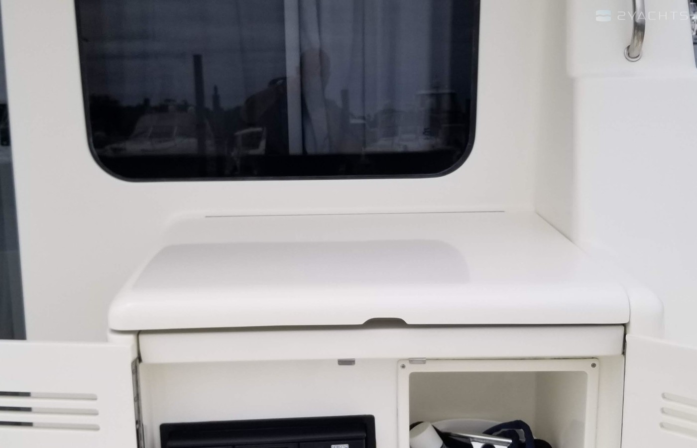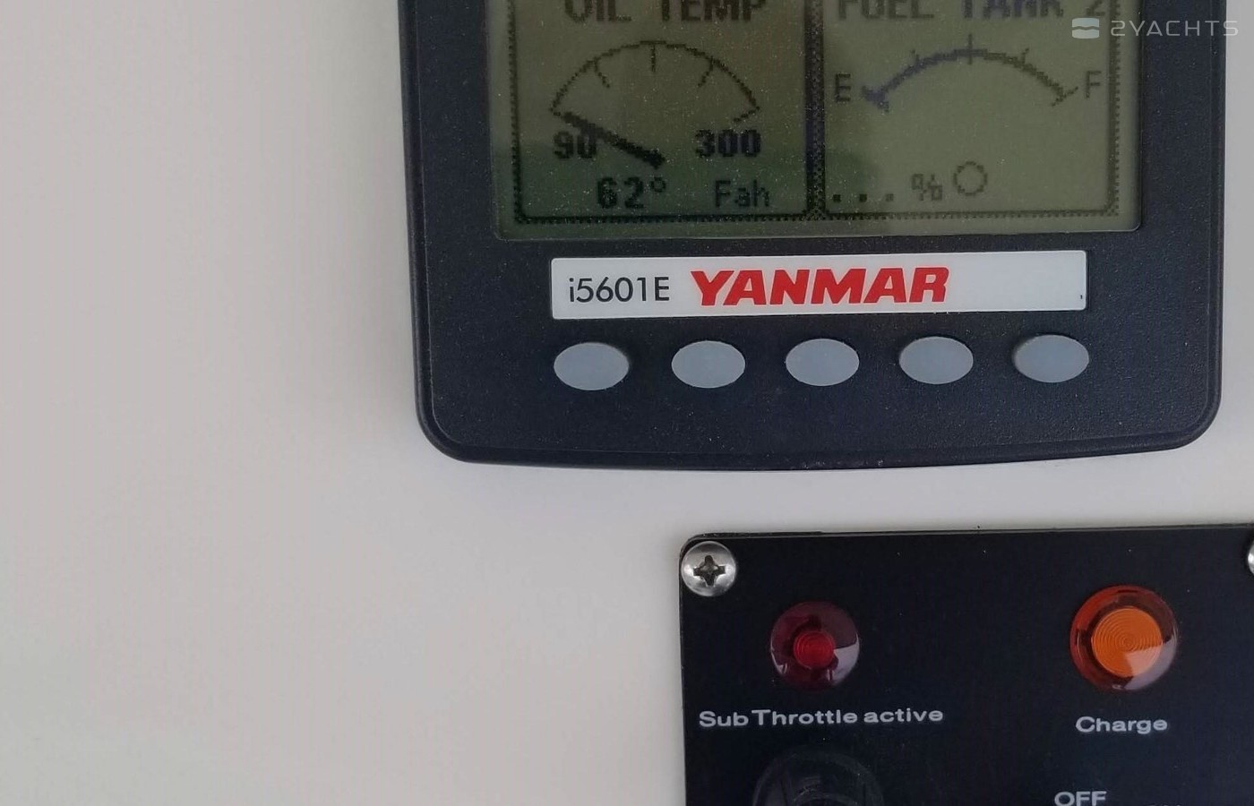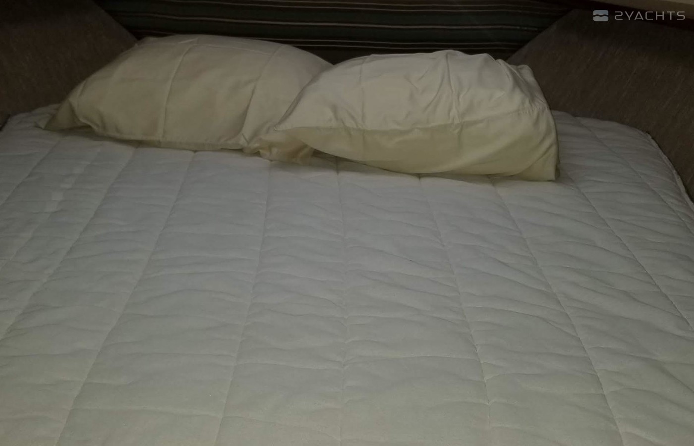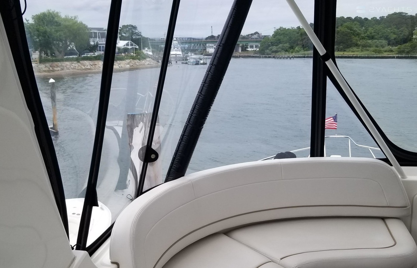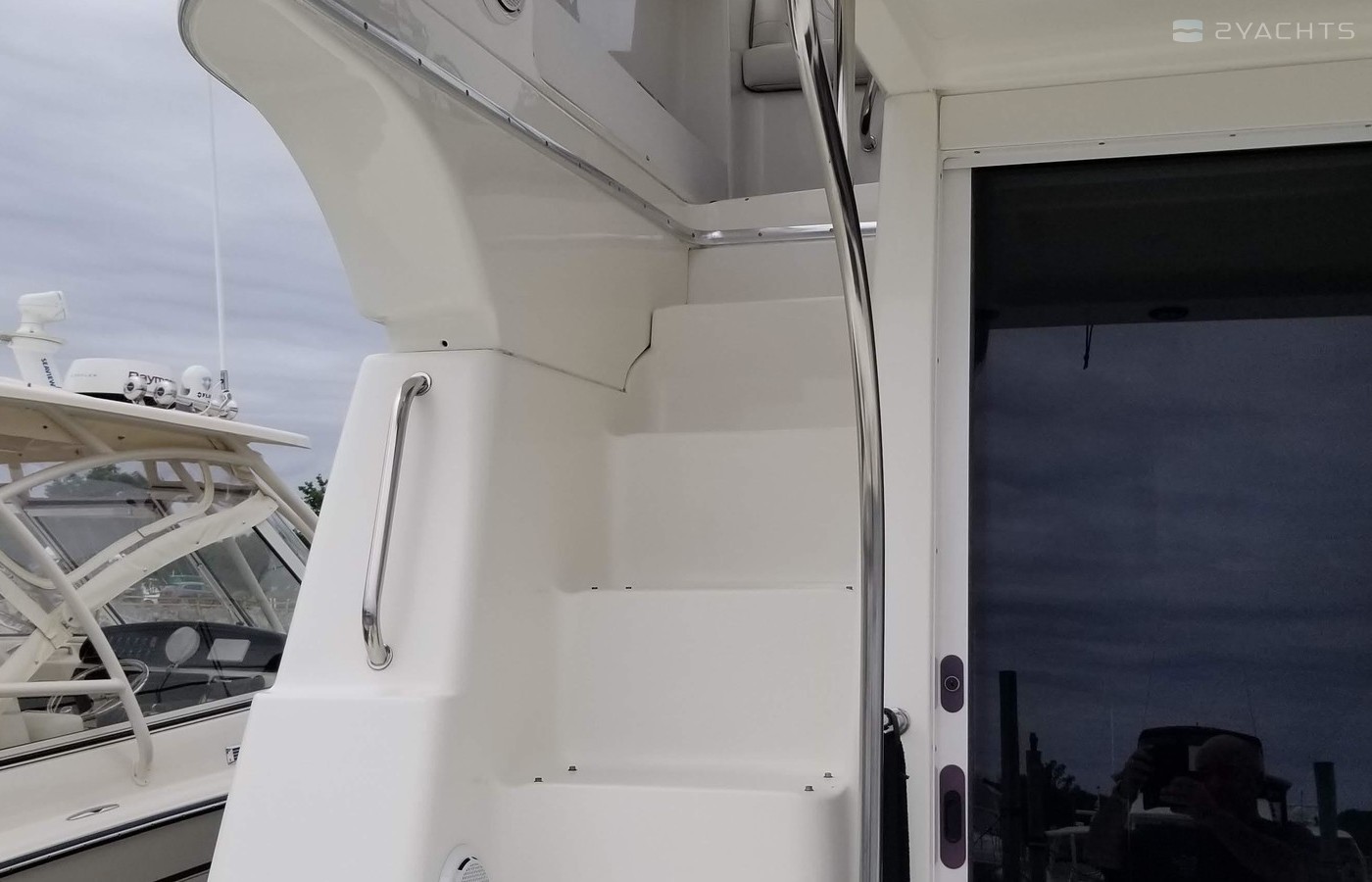 The beamy 42 Convetible utilizes space to a remarkable degree, with ample amenities and storage contributing to the well-being of owners and guests, alike. Consider the 42 Convertible's two luxurious double-berth staterooms served by a split-head and stall shower arrangement. And the enormous booth settee wrapping a solid cherry table angled to face the convertible sofa and entertainment center. In the 42 Convertible, all combine in a superbly styled cabin perfect for conversation or more lively demonstrations of satisfaction. The impressive galley is integrated into the layout. You will also be amazed by the generous expanse of cherry wood, which warms and enriches the interior. Topside on the 42 Convertible, the captain will appreciate an efficient helm station and the power of twin Yanmar Deisels engines. And all will be impressed by her smartly restyled exterior lines.