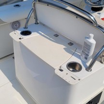 With big-boat standard features in an easily trailerable package, the 240 Outrage is ready for serious bluewater fishing right out of the box. Its wide beam provides plenty of space for 360-degree fishing for up to a dozen avid anglers - made to feel comfortable and secure, thanks to high interior freeboard, stainless steel toe rails and aft coaming bolsters. There's ample storage for everyone's gear, including rod holders at the gunnels and transom, as well as under-gunnel rod racks, plus port and starboard fishboxes to hold the day's catch. An enclosed head / storage area helps keep the fun going all day long without heading back to shore. And getting in and out of the boat is easy, with a convenient transom door and integral swim platform with grab rail and stainless steel swim ladder. Select from a host of options, including dual engines, leaning post options and much more.