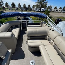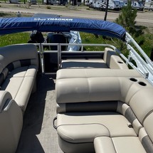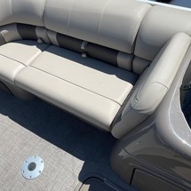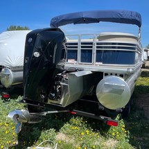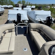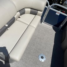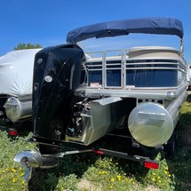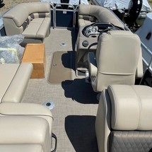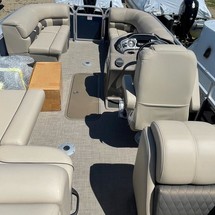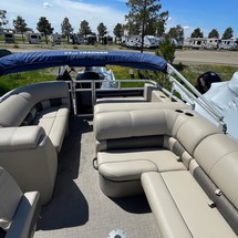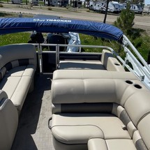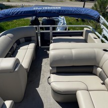With three 26” logs with lifting strakes and factory-installed underpinning, this pontoon boat can handle up to 200 horsepower—extra power for cruising and pulling a tuber! That rear-facing lounge provides the perfect place for a couple of spotters to enjoy the action.