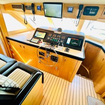 Starting with an Expansive Cockpit Area, We Find a Center Walk-Thru w/ SS Rails, Large Storage Areas and a Strb. Stairwell to the Aft Deck.... The Aft Deck Features a Strb. Side Wet Bar Complete w/ a Sink, BBQ, Refrigerator and Ice Maker. Center There is a Wood Table for Seating and (4) Deck Chairs. To Port there is a Large Cooler w/ Cushion for additional seating. The Salon to Port, There is a Large L-Shape Sofa w/ Custom Storage Below. Opposite we Find (2) Leather Tub Chairs & Ottoman along with a 65" Flat Screen TV and Audio / Video Cabinet to Serve all of your Entertaining needs.Forward of the L-Shaped Sofa there is a Large Glass Dining Table w/ (4) Chairs that serve as your Formal Dining Area... The Galley is as Efficient as it is Beautiful Featuring Upgraded Counter Tops. There is a Full Size Stainless Steel Upright Refrigerator and Separate Freezer that Stocks Plenty of Food for an Extended Cruise. We also have a Recessed (4) Burner Stove Top, Microwave / Convection Oven, Drawer Dish Washer, Trash Compactor and Tons of Custom Storage Area.The Full Beam Master StateRoom is Mid-Ships and Boasts a Center Line King Berth w/ Storage Below. Additional Drawer Storage can be found on both Sides for the bed along with a Large Walk-In Closet, New FlatScreen TV and Custom Furnishings...The Master En-Suite Head has many Popular Accompaniments that you would expect to find on a Yacht of this Caliber - Including a Vanity w/ Dual Sinks, Head and Full Shower w/ Jacuzzi Tub. The Master StateRoom also Features a Private Office complete w/ Work Desk, Ample Shelf Space / Storage and a Hanging Locker. This is a nice area for Additional Privacy and Be Able to Check on Things Back at the Office While on an Extended Trip.... LUCKY JO also features (2) VIP StateRooms, (1) Forward in the Bow Area and (1) Just Aft Down a Private Companionway to Port and Forward of the Engine Room. Both VIP's Boast Walk-Around Queen Size Berths, Drawer Storage, Hanging Lockers, TV w/ Entertainment Centers and Along w/ a Head & Shower....The Main and FlyBridge Helms Features a Full Console w/ CAT Engine Displays, New Furuno NavNet 3D System, Garmin Speed, Wind & Depth, Camera System, ACR RCL Remote SpotLight Control, Bow Thruster and More....The FlyBridge Has Large Seating Areas w/ Custom Upholsteries, Bar Top Area w/ (4) Stools, Sink and Refrigerator. This Area also features a New Full Bimini Top and Custom Radar Arch w/ (2) Radars and SAT TV System. Aft there is a Marquipt Davit w/ Full Rotation and a 12' Extension that Allows For Launch of the Tender off either Port or Starboard Side of the Yacht as well as off the Transom.
