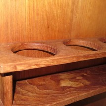 One burner propane stove, cooler, shelves for plates and one cabinet under sink
