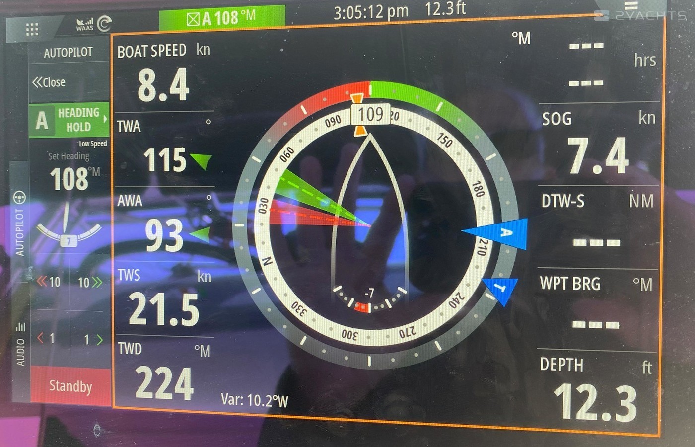 Quality winches and one powered winch which will handle line from any of the winches. complete roller furling. Ive been single handing this boat for 6 months with no problems. And that includes sailing in the inter coastal if there is wind. I've got to admit, that will keep you busy in the Ga Carolina areas:)