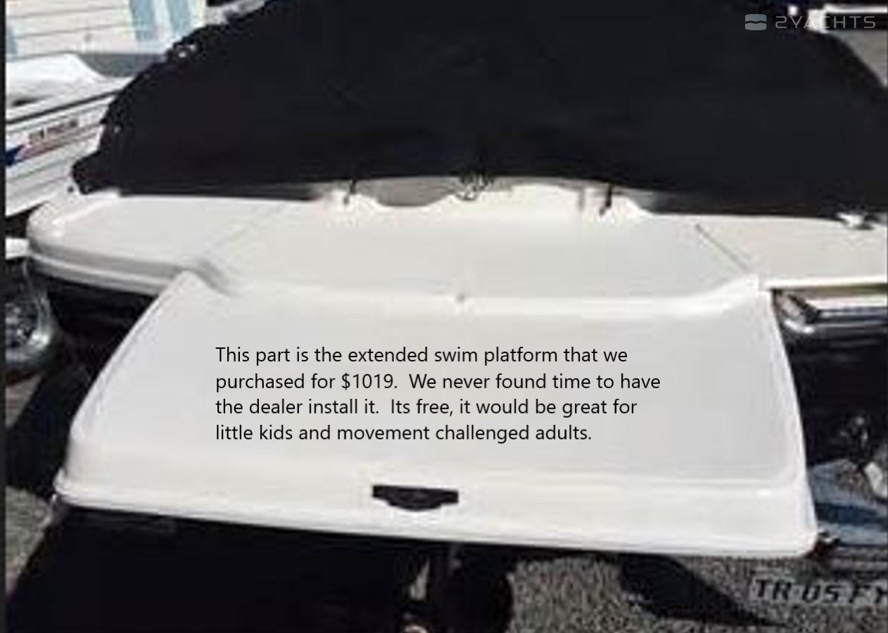 This boat comes with some unusual features including 1) tinted windows, 2) an aftermarket installed stainless steel grab rail above the ladder (see picture), and a never used, not installed extended swim platform (a $1,019 purchase).