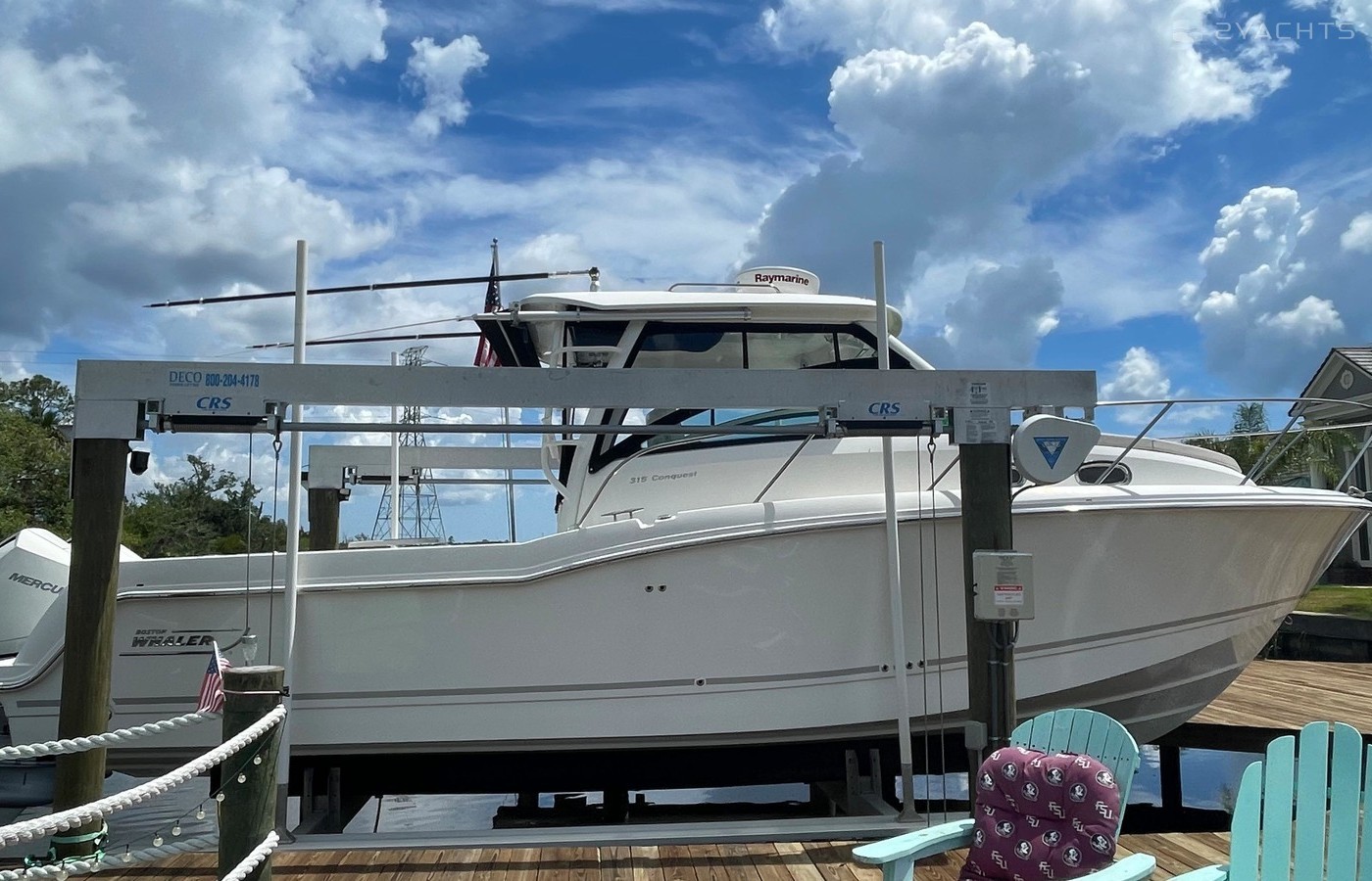 Rugged sophistication, cutting-edge convenience and incredible functionality inform the 315 Conquest®, a boat designed for hardcore anglers, express cruisers and overnighters. From the spacious cabin with large skylight over the galley, to the well-protected helm, to angler-pleasing cockpit, the 315 perfectly marries capability and versatility. Personalize the 315 to suit all of your needs, and enjoy long days and nights onboard with confidence that goes to the core.