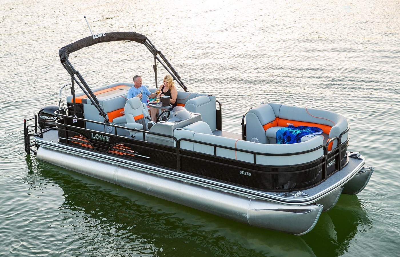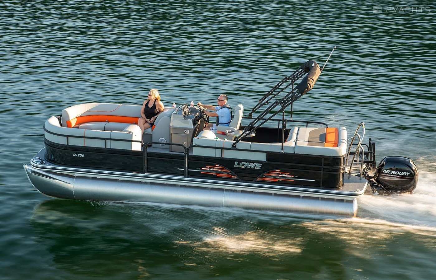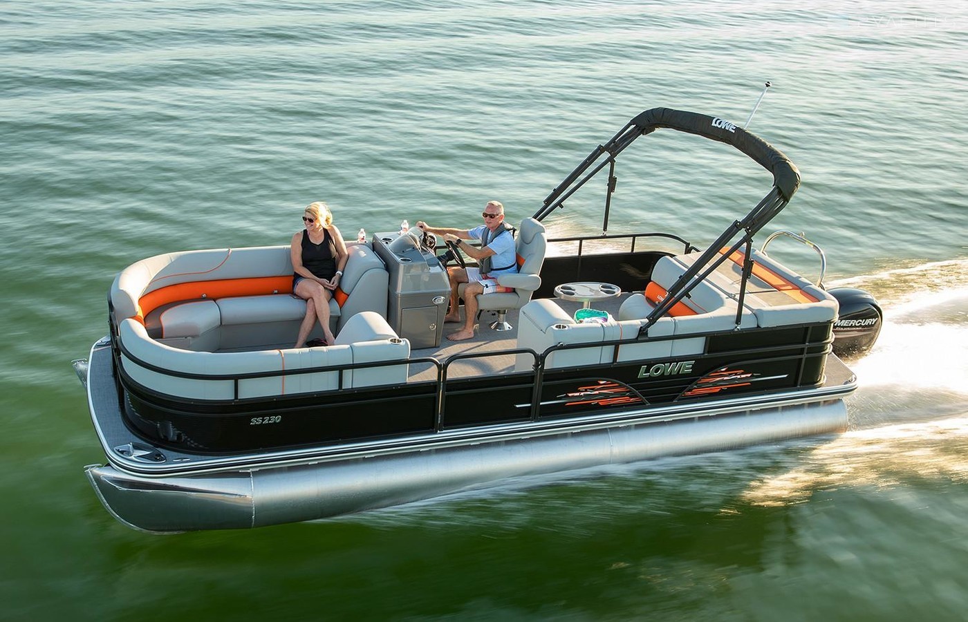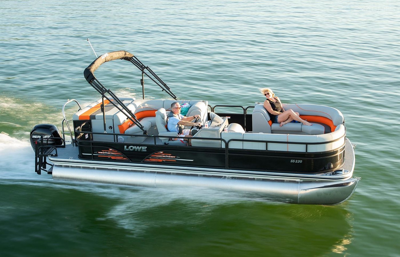 The Lowe Super Sport 230 is a mid-sized cruiser pontoon boat that offers some of the best performance and total comfort for you and your whole crew. Whether you grab your family, your fishing buddies, or make some new friends, expect bountiful thrills in swimming, watersports, or leisurely hours spent stretched out in the sun. The SS 230 is big on fun, big on space, and big on value—discover the top-notch Lowe pontoon boat that delivers it all.