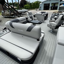 2022 Sylvan L-3 CLZ DH Tritoon - IN STOCK, SPX TRITOON PKG, CENTER TUBE STORAGE, TEAK WEAVE FLOOR, BLACKOUT RAIL PKG, ELECTRIC POWER BIMINI TOP, PLAYPEN MOORING COVER, LIGHTED CUP HOLDERS, DELUXE X DECK SKI BAR, CELL PHONE HOLDER, HUMMINBIRD HELIX 5 GPS, COASTAL PKGPRICE INCLUDES: Yamaha 200 4-Stroke (other horsepower options are available and in stock)PRICE DOES NOT INCLUDE TRAILER: Tandem Axle Trailer are in stock starting at $6,000 with 4 wheel disk brakes, radial tires, bow steps, vinyl bunk slicks, and tie-downsSpecificationsThird Tube Max Horsepower: 300 HPBeam: 102 in.Dry Weight: 2100 lb.Max Persons: 13Max Capacity: 2320 lb.Fuel Capacity: 60 gal.Length: 23 ft. 10 in.Tube Diameter: 25 in.Tube Guage: .100 in.Deck AmenitiesExtended Rear DeckChange RoomStainless Steel 4-Step Telescoping LadderBlue Interior Mood LightingTable with Table Base (N/A on all models)4 Pop-up CleatsRotocast Plastic Seat Bases with DrainageCanvasOPTIONAL POWER BIMINI TOPOPTIONAL PLAYPEN MOORING COVERDash/ConsoleConsole Cup HolderAM/FM Stereo w/ BluetoothSpeedometerVolt MeterTachometerTrim GaugeHigh Bach Helm ChairVerona Steering WheelWindscreen (All non DC Models)Fuel Guage4 - 6 1/2' SpeakersOPTIONAL 60 Gallon Gas TankSteering OptionsOPTIONAL SEA STAR HYDRAULIC STEERINGTubes OptionsOPTIONAL SPX PR 20 PERF PKG (TRITOON W/ LIFTING STRAKES & UNDERSKIN LINER, HEAVY HAT CHANNELS, SKI BAR)Flooring OptionsOPTIONAL TEAK WEAVE FLOORElectrical OptionsOPTIONAL LIGHTED CUP HOLDERSMisc. OptionsOPTIONAL DECK MOUNTED SKI BAROPTIONAL FULL HEAVY HAT UNDERSTRUCTURE