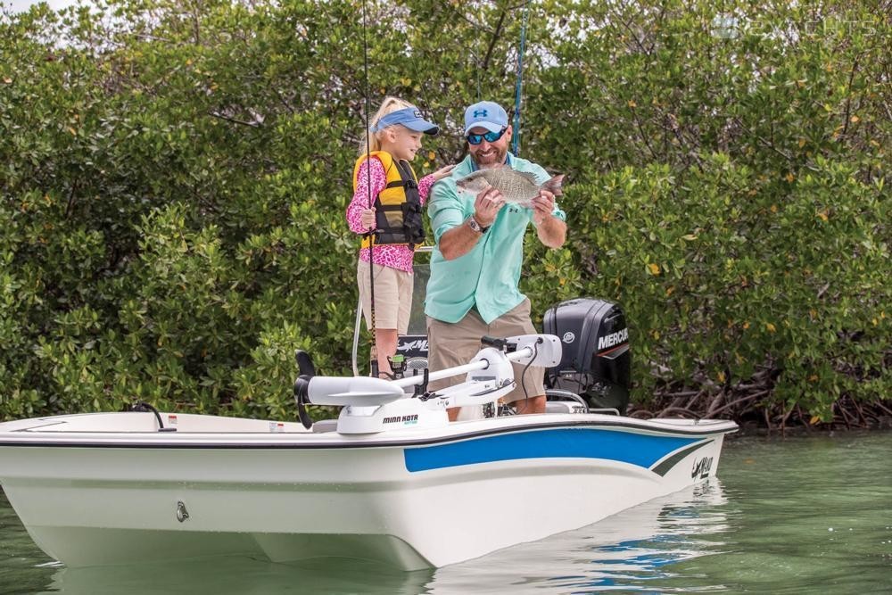 The 100%-composite MAKO® Pro Skiff 17 CC is our most popular model because it packs in a massive amount of fishability into a nimble, right-sized package. The patented Advanced Inverted V (AIV) hull design provides a quick holeshot, smooth, dry ride and nimble handling and maneuverability. It’s ideal for all types of inshore fishing, and it’s nearly 3/4-ton capacity makes it one of the hardest working boats in its class.