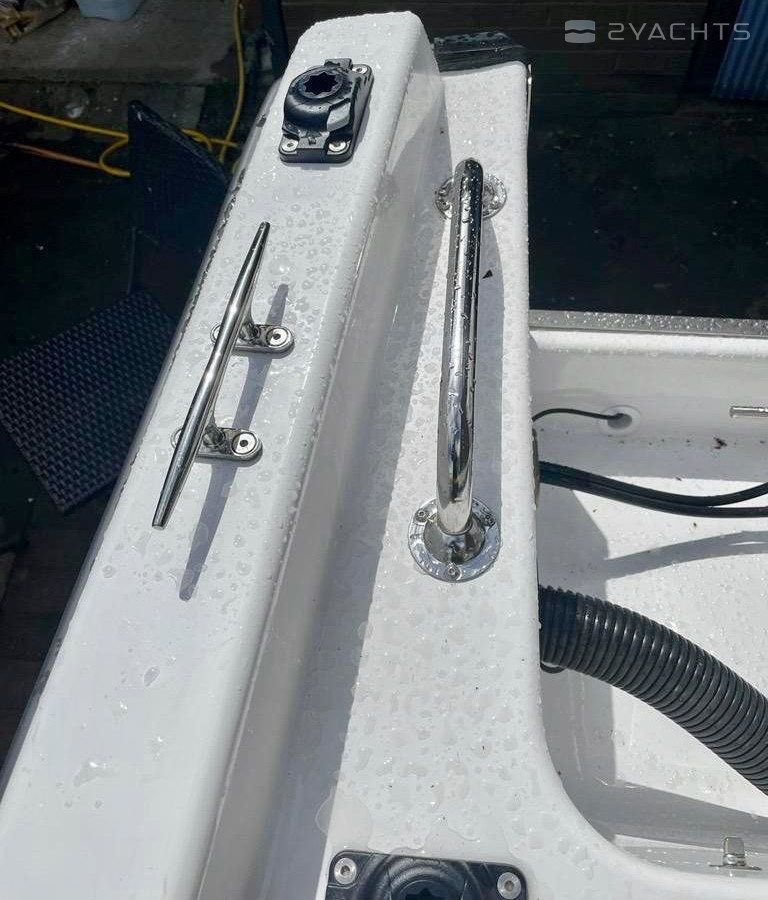 The rear cabin edges each have a stainless steel grab rail fitted, with the gunnel tops also carrying a short stainless grab rail.