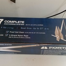 Secondary anchor Fortress 27’, 250 ft Nylon rope (FX-7)12 Dual Battery Switches - 3 Batteries – Battery charger