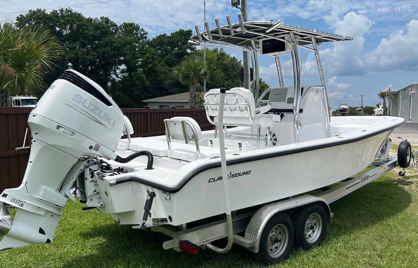 Factory Demo, Powered by a Suzuki 250hp engine and sitting on a custom Float on Aluminum Trialer with Spare.this will not last! New with full warramty. Vaccum Infused Clark Sound 24 is the perfect boat for the Fisherman and family that wants to do it all. Super comfortable dry ride from seasoned South Carolina boat builders. MSRP on a 2023 is $153,902. Rigged and ready to go. 12'' Garmin MFD, Kicker Audio Package, ROKK phone charger/holder, Removable back seat with full cushion seat, 80 gal macerated fishbox, twin 17gal , Raw water washdown, dual bilge pumps, dual batteries, bow cushion, tons of cup holders and rod holders, and much more! Dont miss on this, call /text Paul at 843-478-2850 or Office at 843-559-0379