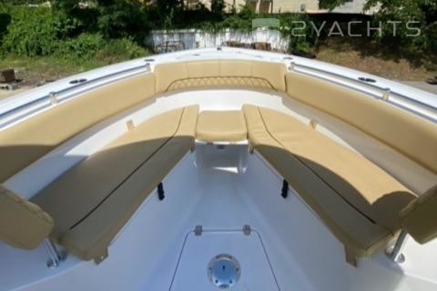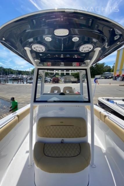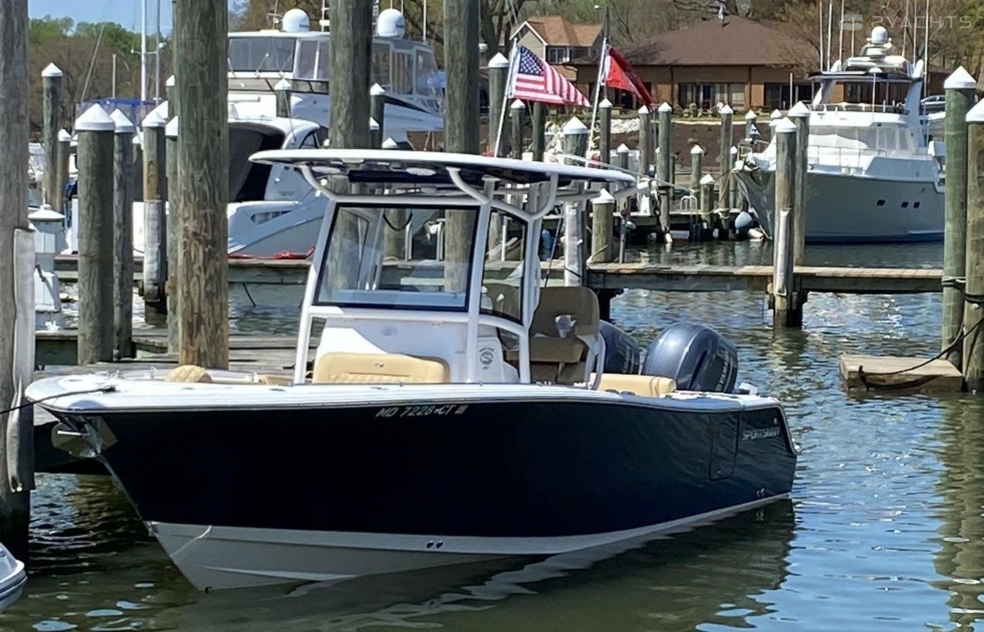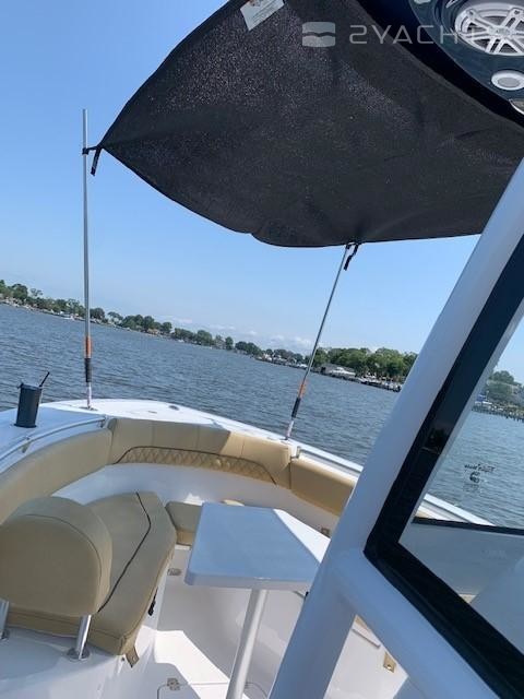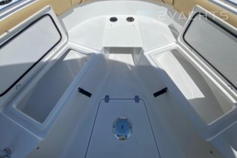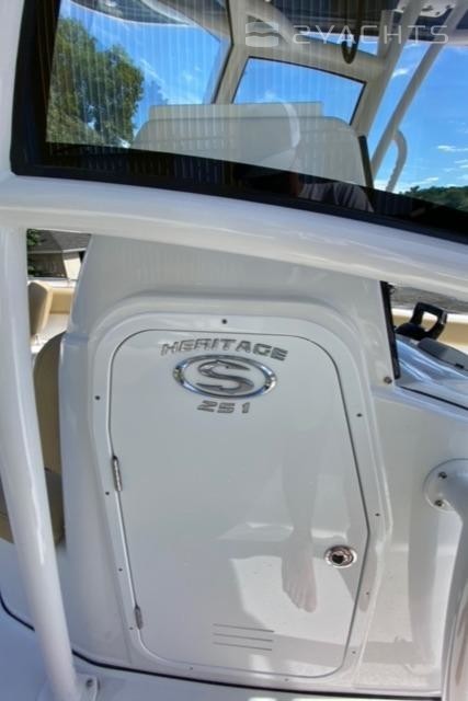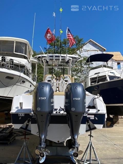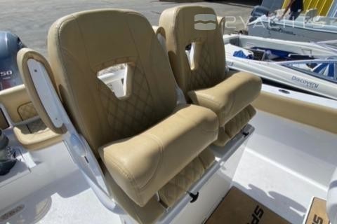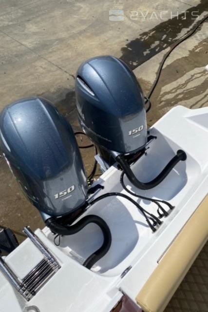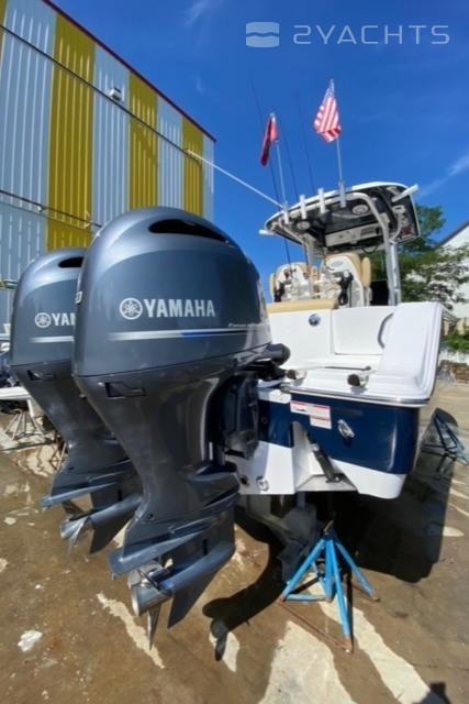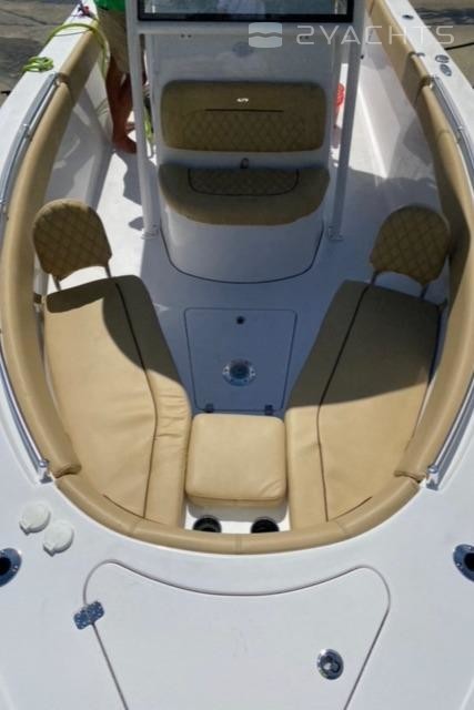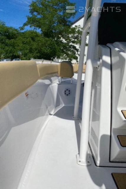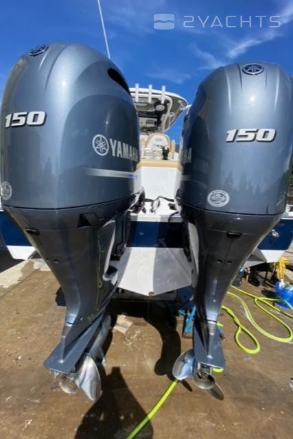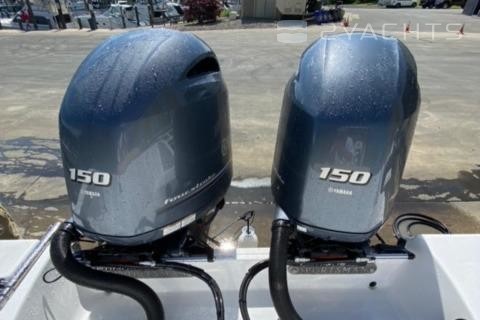 The 251 starts by offering more room than you normally expect in a boat of this lengththanks to a 9’2” beam. Then add in features like a pair of 30-gallon livewells, an 80-gallonmacerated fishbox, coaming bolsters all around, and an anchor windlass on the through-hull anchor system. This boat also has family-friendly features like an aft bench seat andremovable backrests for the bow seating. Stored indoors with less than 50hours on apair of very efficient Yamaha 150’s!Electronics:_ Garmin GPSmap, VHF 215 w/ AntennaDescription:_- 2 x 150hp Yamahas- < 50 hours- Armed captain chairs (upgrade)- Front shade from factory- Front table with storage in head Displacement – 4100 lbs.-Draft (hull) – 1’6”-Transom Deadrise – 21 degrees-Fuel Capacity – 155 gal