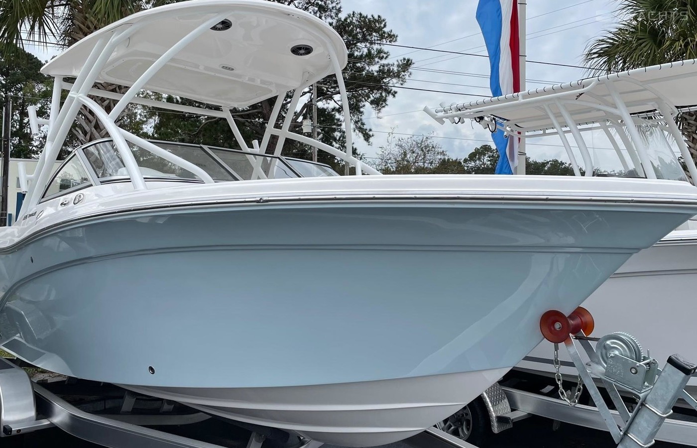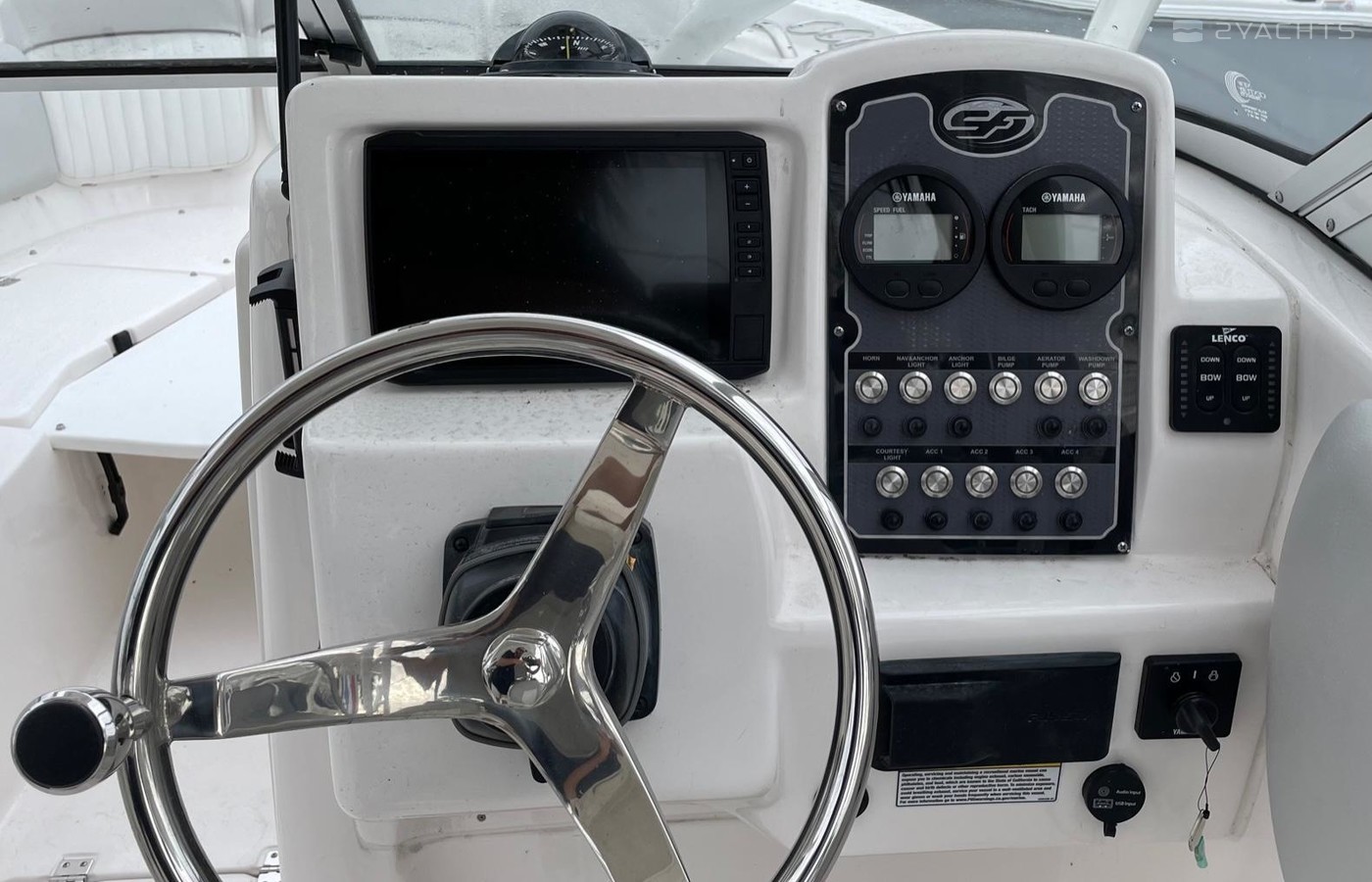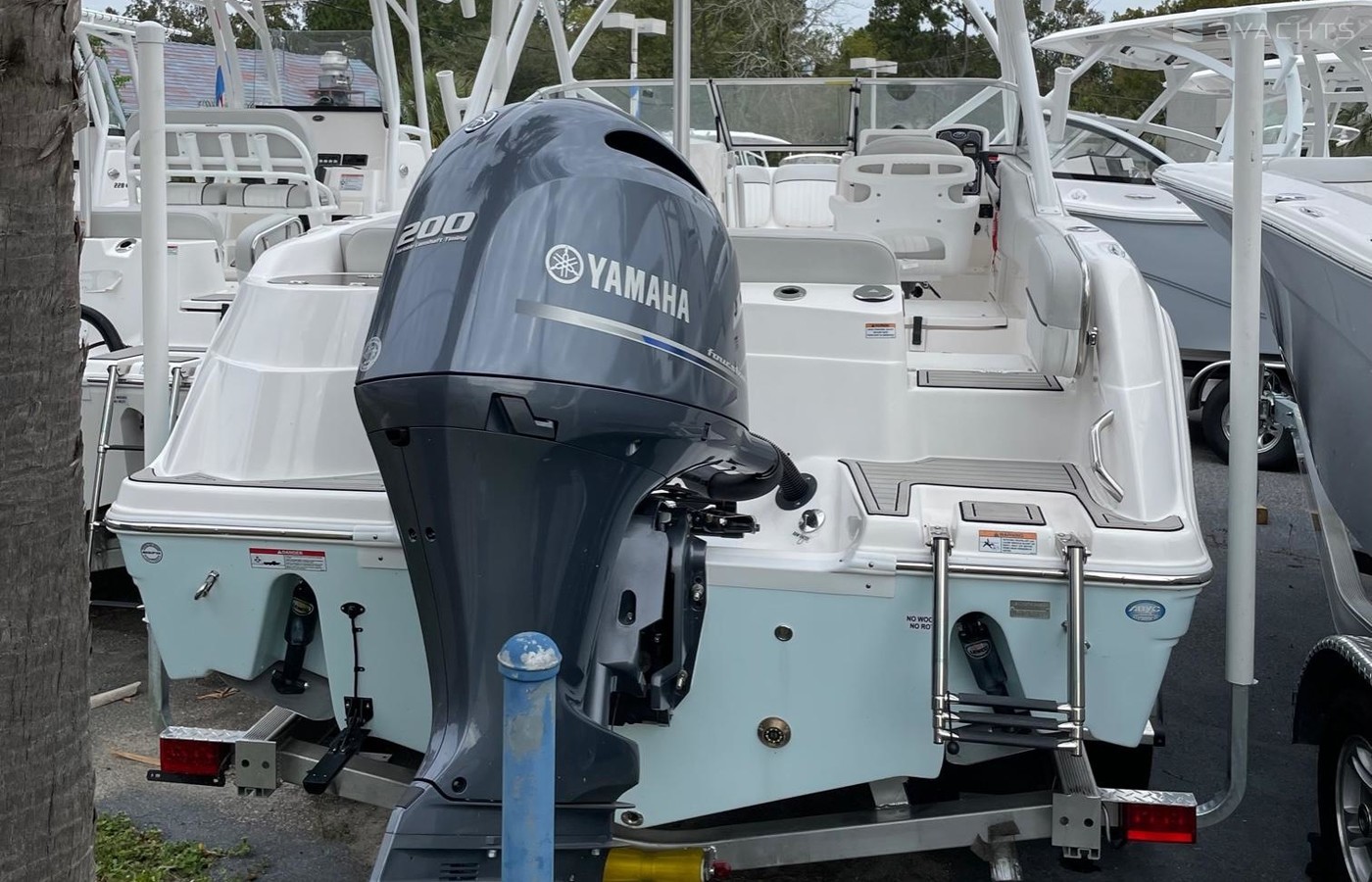 Powered with a Yamaha F200XB this boat is equipped with the Ultima Fiberglass Hardtop, Garmin 9' GPS/Depth Finder, Fusion Bluetooth Stereo, full Marine Head w/ Holding Tank, Livewell, removable Ski Tow Bar, Dual Batteries w/ Switch, Magic Tilt Custom All-welded Aluminum Trailer, and MUCH MORE!!