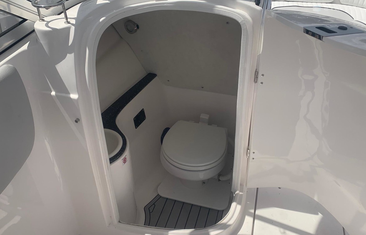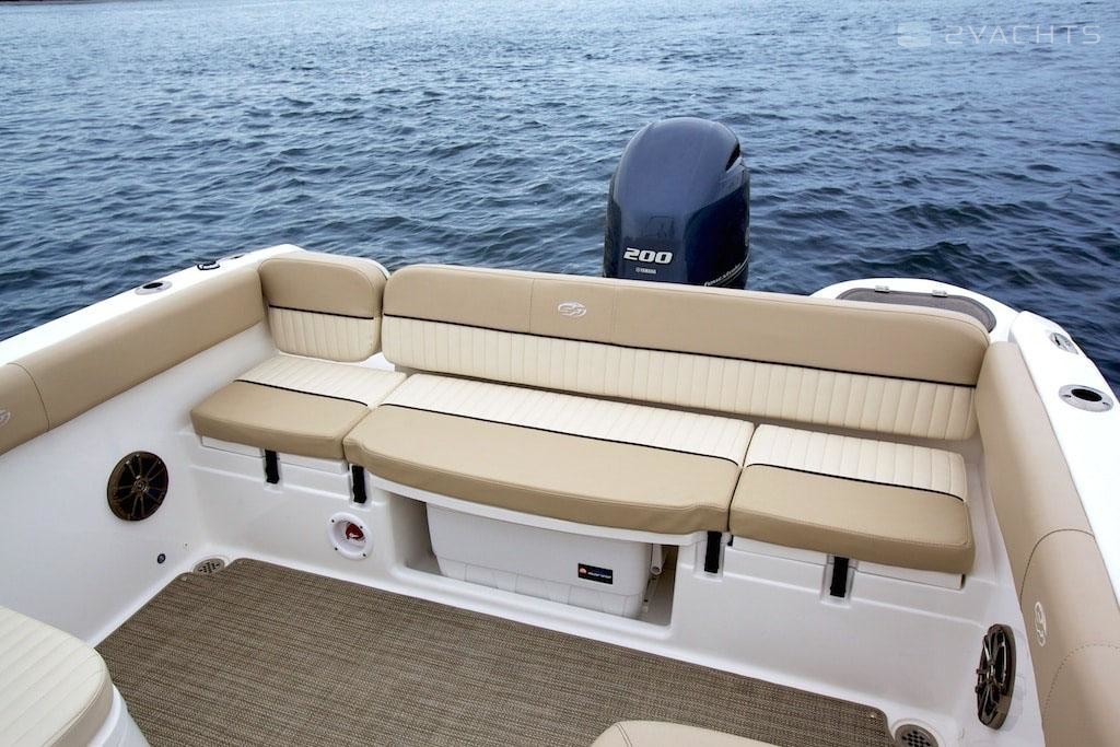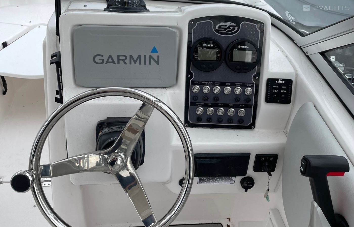 Powered with a Yamaha F200XB this boat is equipped with the Ultima Fiberglass Hardtop, Garmin 9' GPS/Depth Finder, Fusion Bluetooth Stereo, full Marine Head w/ Holding Tank, Livewell, removable Ski Tow Bar, Dual Batteries w/ Switch, Magic Tilt Custom All-welded Aluminum Trailer, and MUCH MORE!!