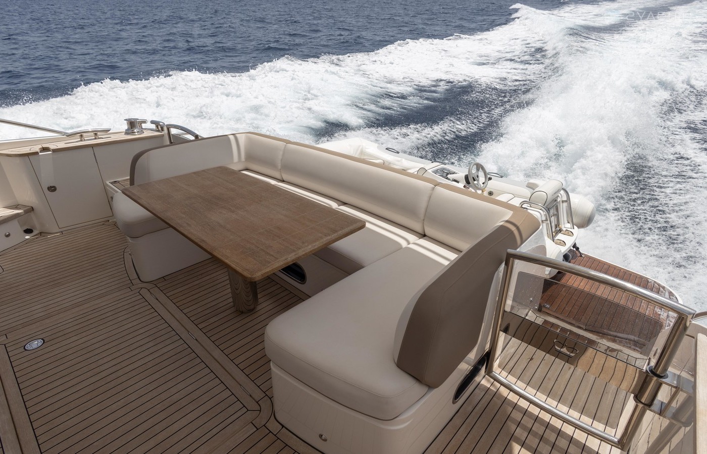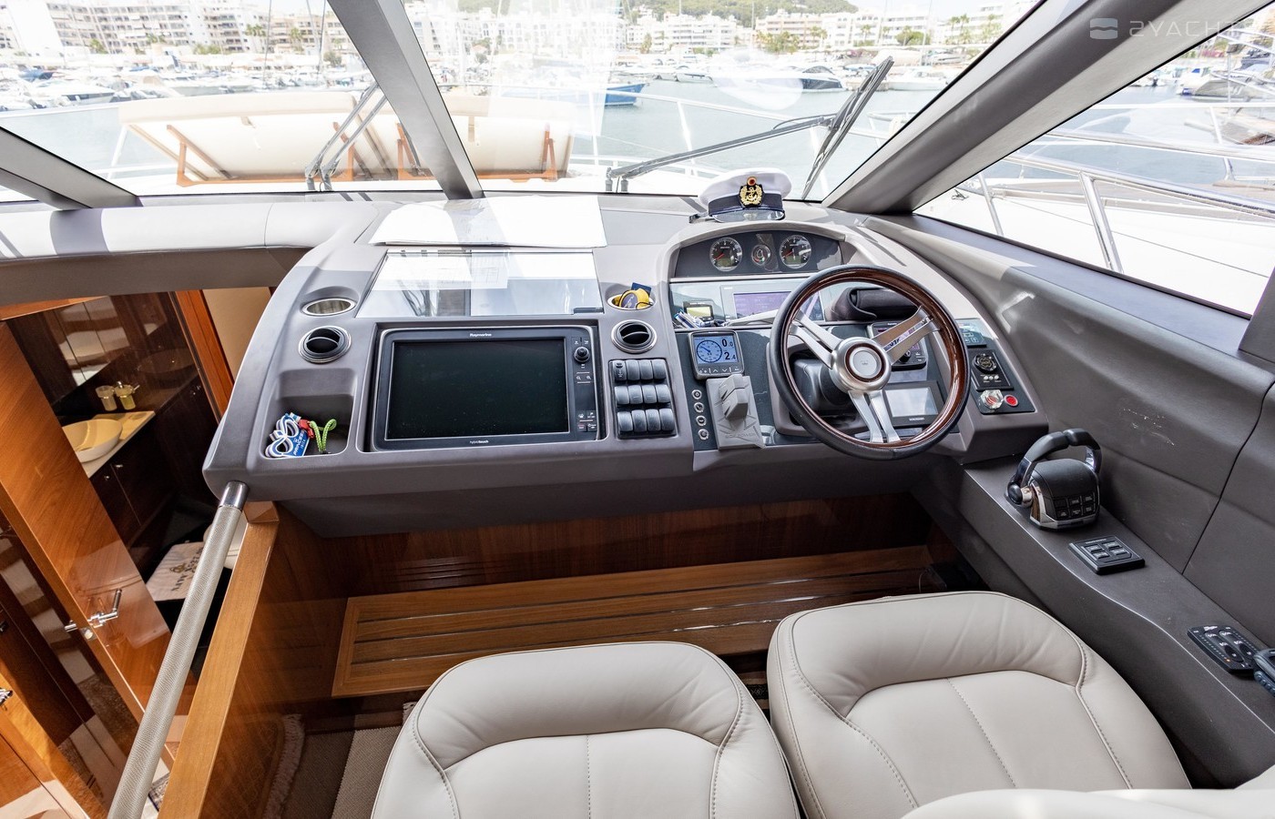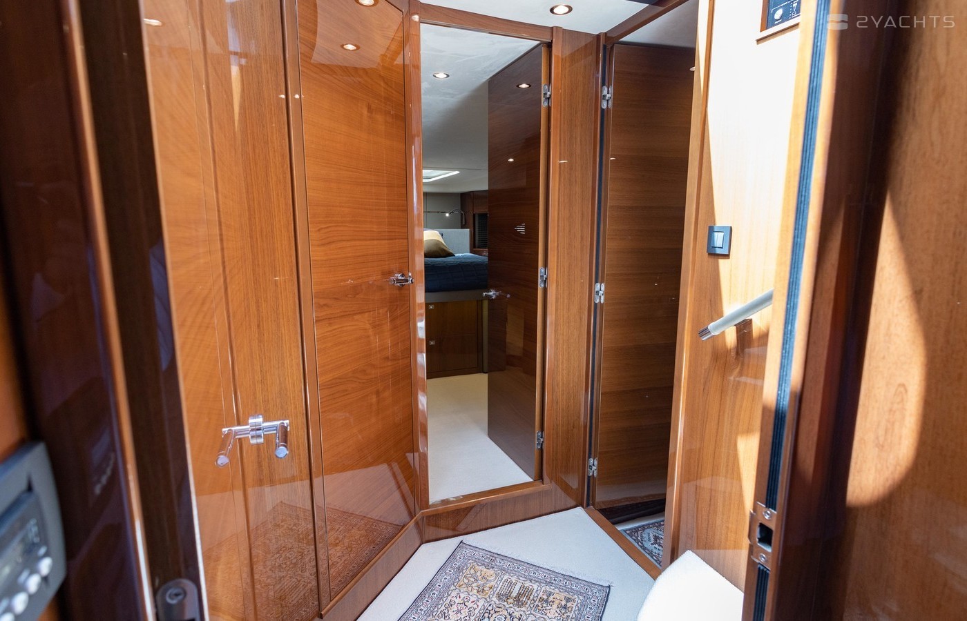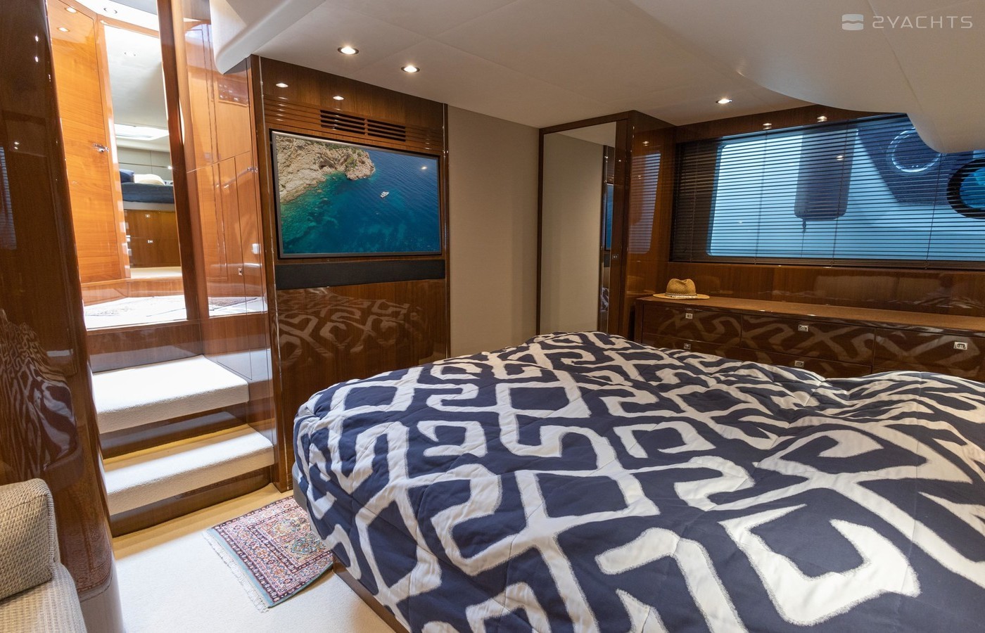 2015 Model, Built 2014 • Twin Volvo D13-900 Diesel engines • 3 Cabins accommodating 6 Guests plus 2 Crew • Teak laid flybridge and side decks • Onan 17.5kW Generator • Walnut interior wood gloss finish • GRP Flybridge hardtop featuring electric opening • Transom bathing platform with electro hydraulic raise/lower mechanism • Dometic watermaker 180l/h • Reverse air-conditioning/heating • Waterproof cockpit Speakers • LED TV's with bluetooth facility • Underwater transom lights • Icemaker New • Sat Trac Vision TV6 • Sleipner stabililsers • Full serviced and ready to use