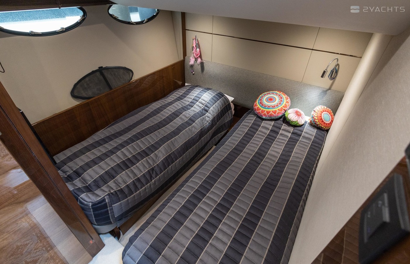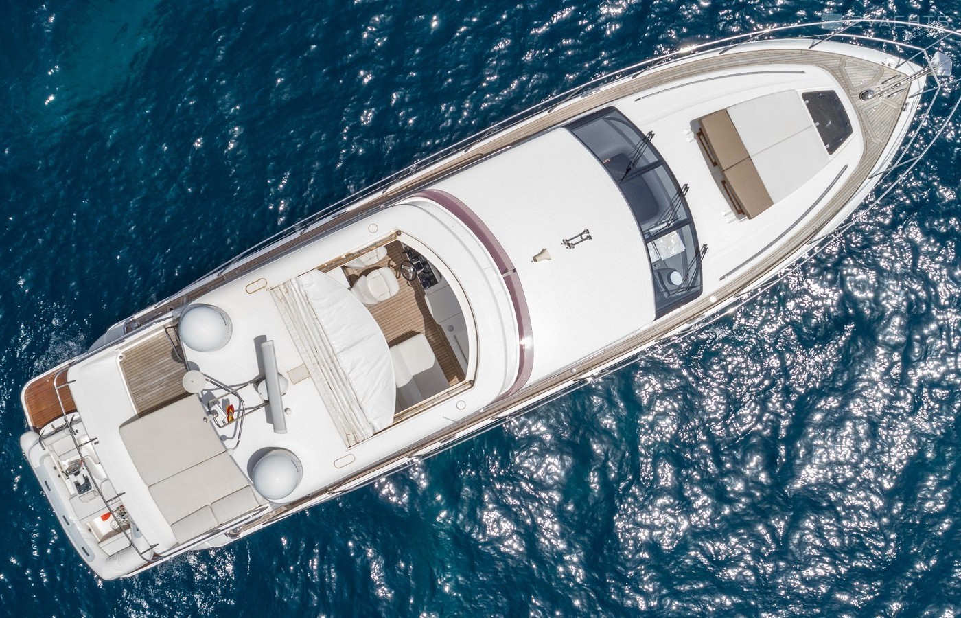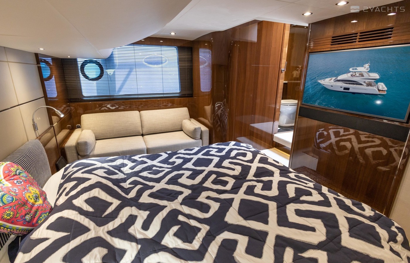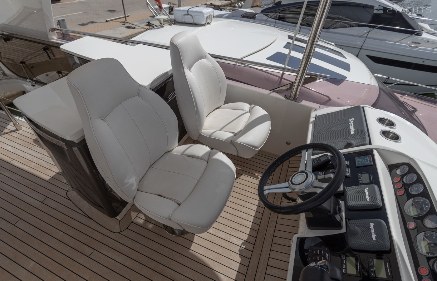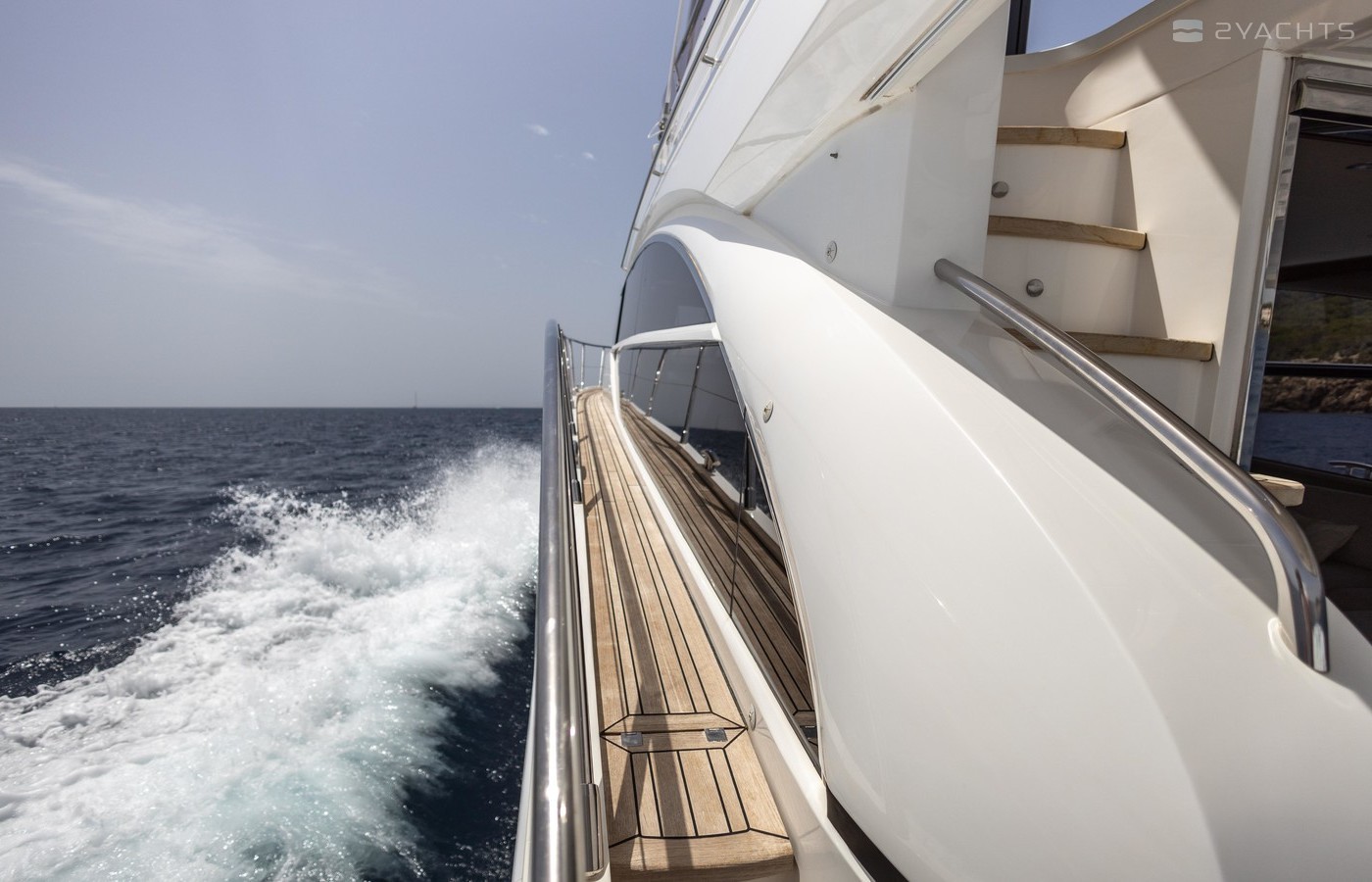 2015 Model, Built 2014 • Twin Volvo D13-900 Diesel engines • 3 Cabins accommodating 6 Guests plus 2 Crew • Teak laid flybridge and side decks • Onan 17.5kW Generator • Walnut interior wood gloss finish • GRP Flybridge hardtop featuring electric opening • Transom bathing platform with electro hydraulic raise/lower mechanism • Dometic watermaker 180l/h • Reverse air-conditioning/heating • Waterproof cockpit Speakers • LED TV's with bluetooth facility • Underwater transom lights • Icemaker New • Sat Trac Vision TV6 • Sleipner stabililsers • Full serviced and ready to use