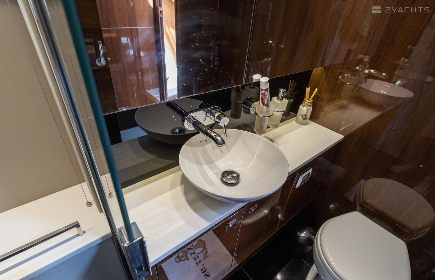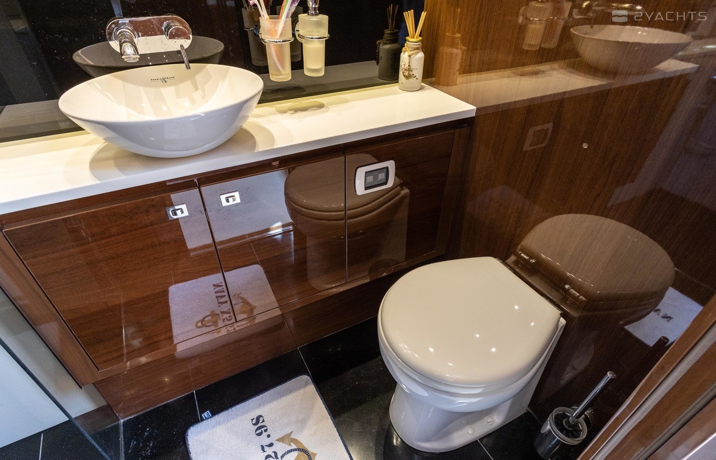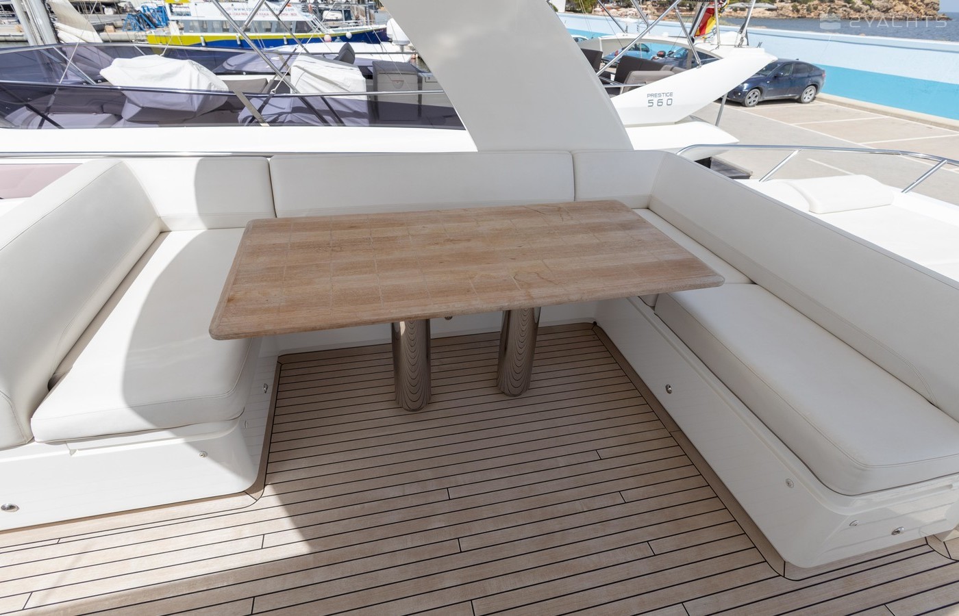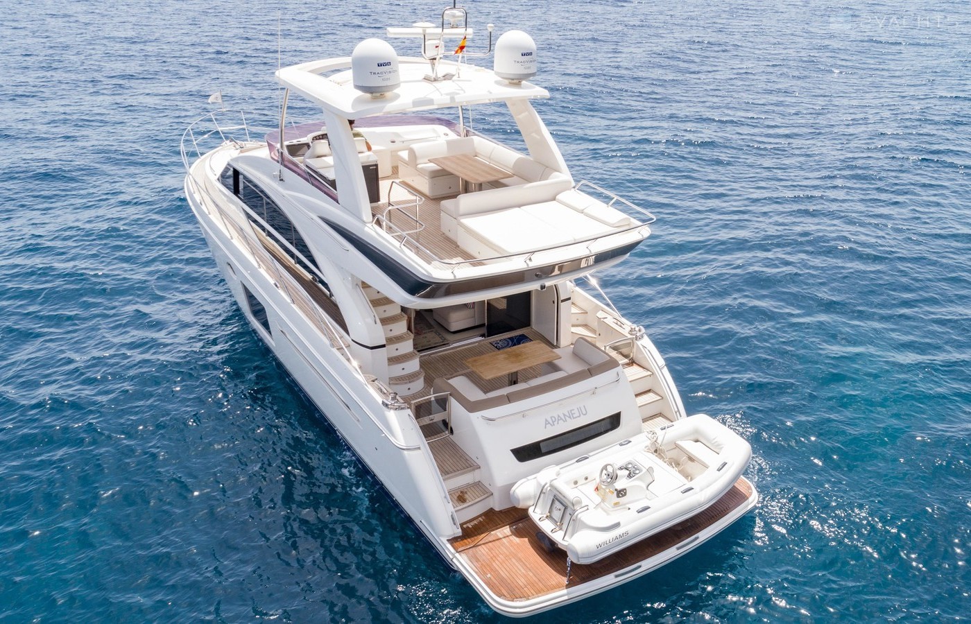 2015 Model, Built 2014 • Twin Volvo D13-900 Diesel engines • 3 Cabins accommodating 6 Guests plus 2 Crew • Teak laid flybridge and side decks • Onan 17.5kW Generator • Walnut interior wood gloss finish • GRP Flybridge hardtop featuring electric opening • Transom bathing platform with electro hydraulic raise/lower mechanism • Dometic watermaker 180l/h • Reverse air-conditioning/heating • Waterproof cockpit Speakers • LED TV's with bluetooth facility • Underwater transom lights • Icemaker New • Sat Trac Vision TV6 • Sleipner stabililsers • Full serviced and ready to use