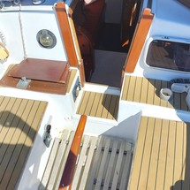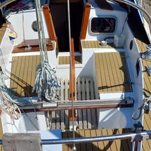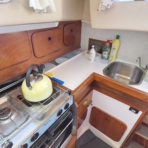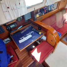 A nice family cruiser based on the famous Sparken & Stephens design. She has a good performance under sail and engine. Well constructed, heavy enough for offshore cruising. Her warm and cosy interior provides lots of comfort. Between 1974 and 1977 she circumnavigated the world. She has also been sailed to Norway, Iceland and Holland single-handed.