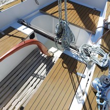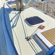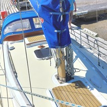 Aluminium spars, stainless steel standing rigging, slab mainsail reefing, spinnaker pole, rope running rigging, headsail furling, Kemp mainsail (2014), Kemp genoa (2014), spinnaker with chute, 5 winches (2 self-tailing sheet winches), spade anchor & 40m chain, anchor locker, manual anchor windlass, stanchions, stainless steel guardwires, boarding ladder, 4 opening ports, boathook, C&J Marine sprayhood, fully enclosed cockpit cover, mainsail cover, 2 cockpit cushions.