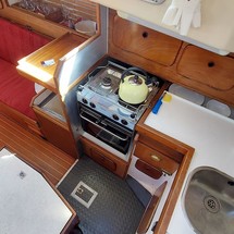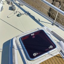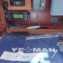 JRC radar, Garmin GPS, Navtex, Raymarine autopilot, NASA log/speed indicator, Standard Horizon VHF, compass, navigation lights, NASA echosounder, clock, ICOM handheld VHF, 4-man liferaft, floating light, lifebouy, radar reflector, fire extinguisher, first aid kit, fire blanket, 12v bilge pump, manual bilge pump.