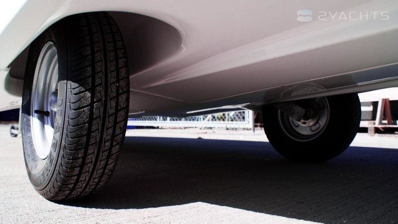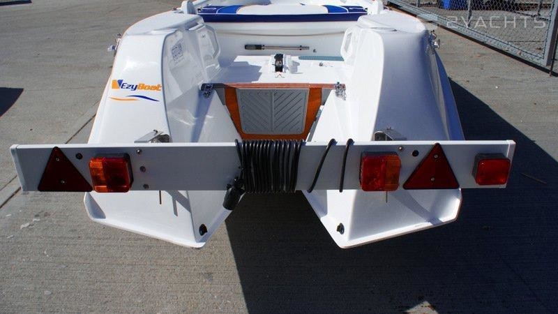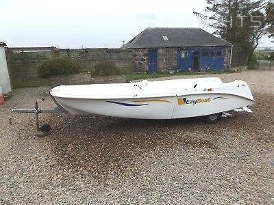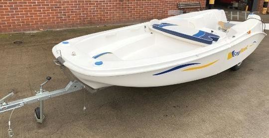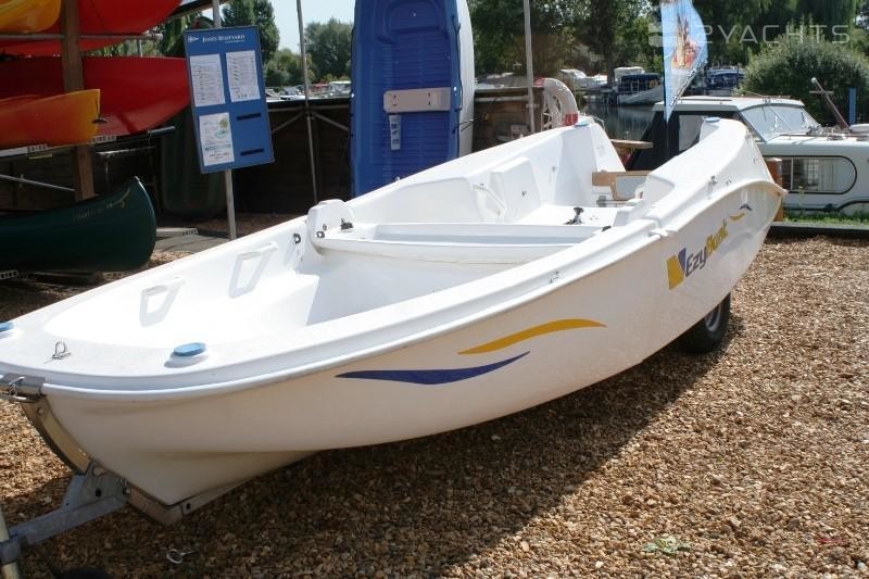 This Ezyboat is a well priced example of this practical trailable and versatile dinghy. She has a white GRP hull and superstructure with a PVC rubbing strake. The unit is hinged in the middle and has an integral trailer with lift up wheels. There is a centre thwart and the boat certified for 4 people. The maximum outboard capacity 20hp.