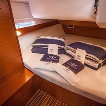 Fivek can accommodate up to 10 people in 4 double cabins and a saloon with 2 extra beds. Pillows and blankets are included in the price.