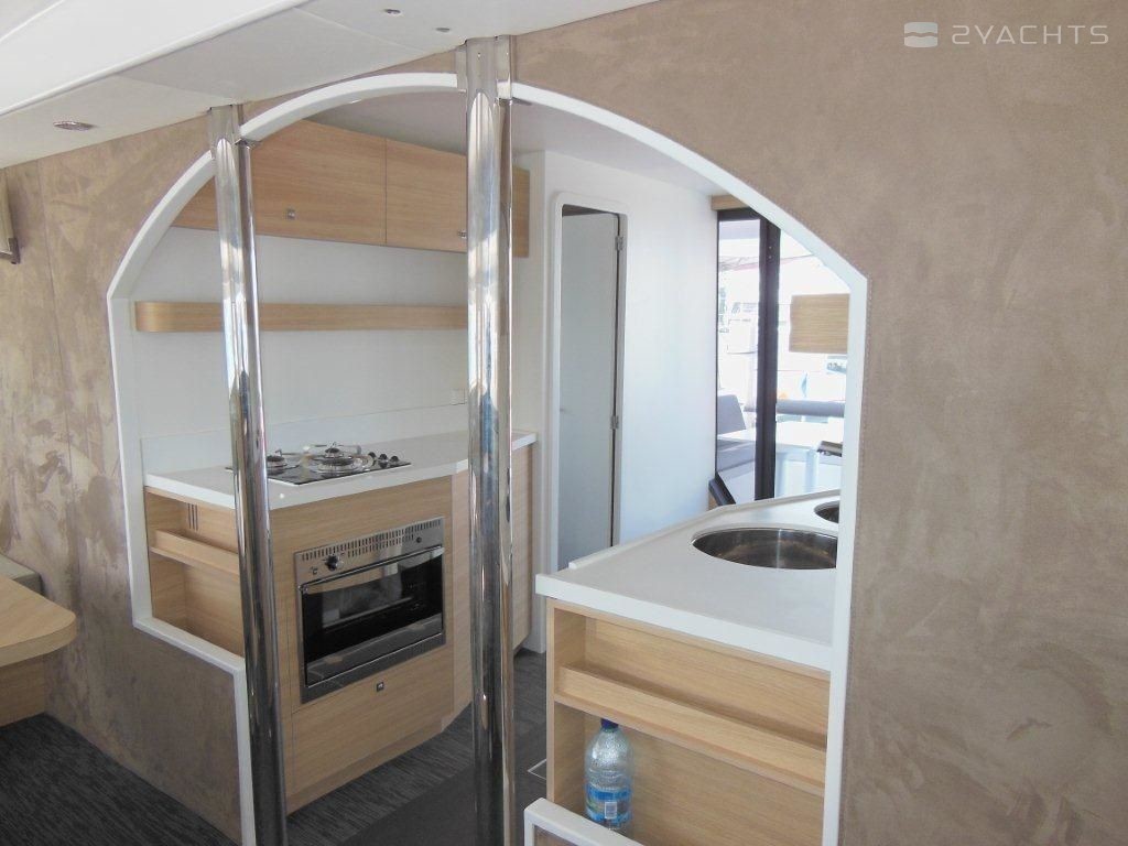 Boat equipment features classical mainsail, salon gps plotter, bimini and bow thruster. It also boasts an an audio system, outside speakers and inside speakers. The fully-equipped galley includes an oven, cooker, sink and kitchen utensils.