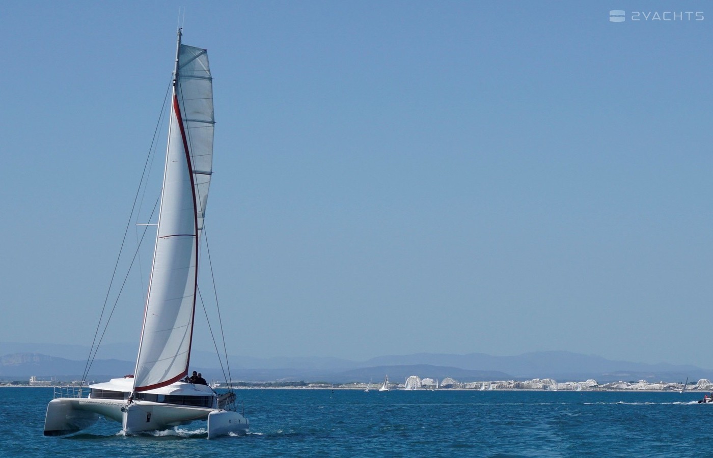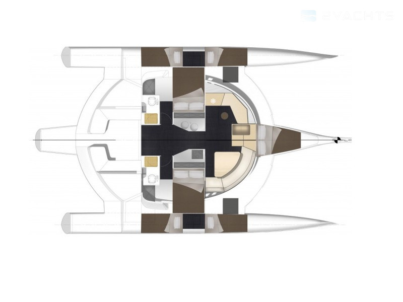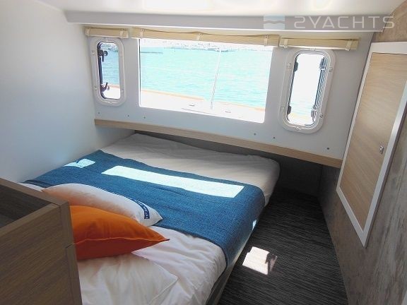 This catamaran is operated by the charter company Emeraude Multicoques.