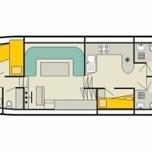 The living area of this houseboat consists of 5 cabins and accommodates 12 people. A shower is at the guests' disposal and there are 3 toilets on board.