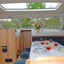 This houseboat is equipped with bow thruster. In chilly weather, guests will benefit from heating. an audio system, dvd player, outside speakers, flybridge and inside speakers are also available.