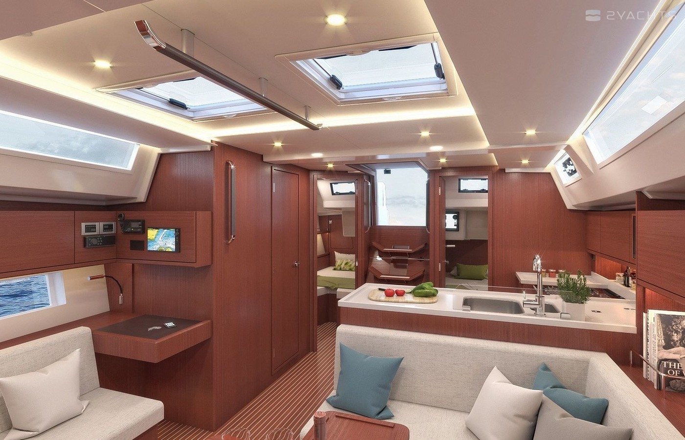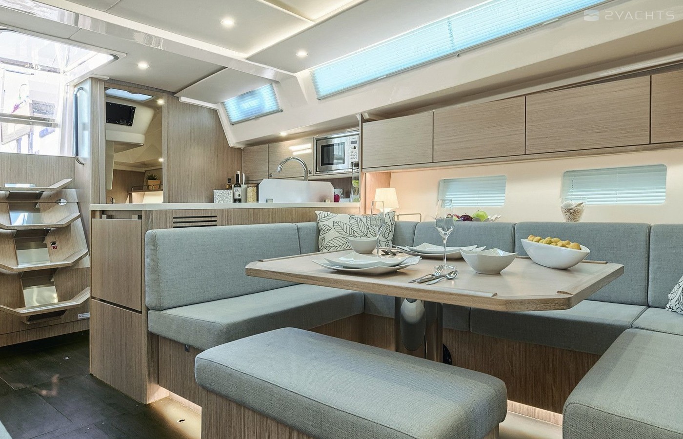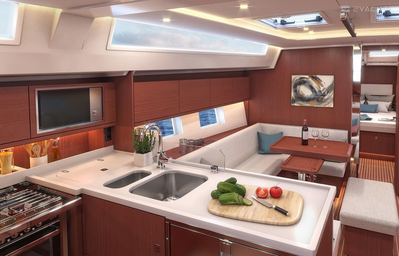 Boat equipment features classical mainsail, bimini and bow thruster. It also boasts an an audio system, outside speakers and inside speakers. The fully-equipped galley includes an oven, cooker, sink and kitchen utensils.
