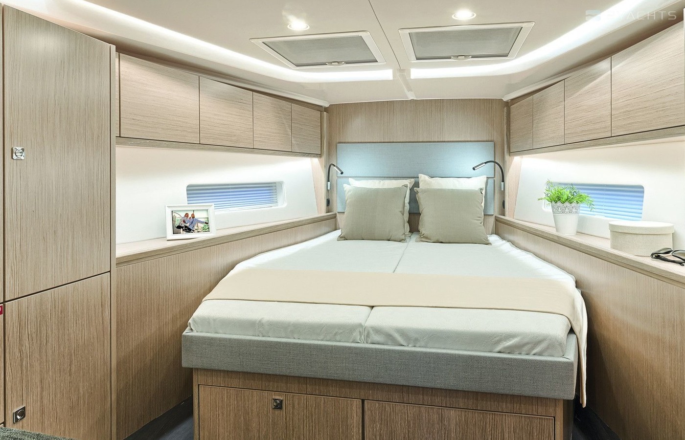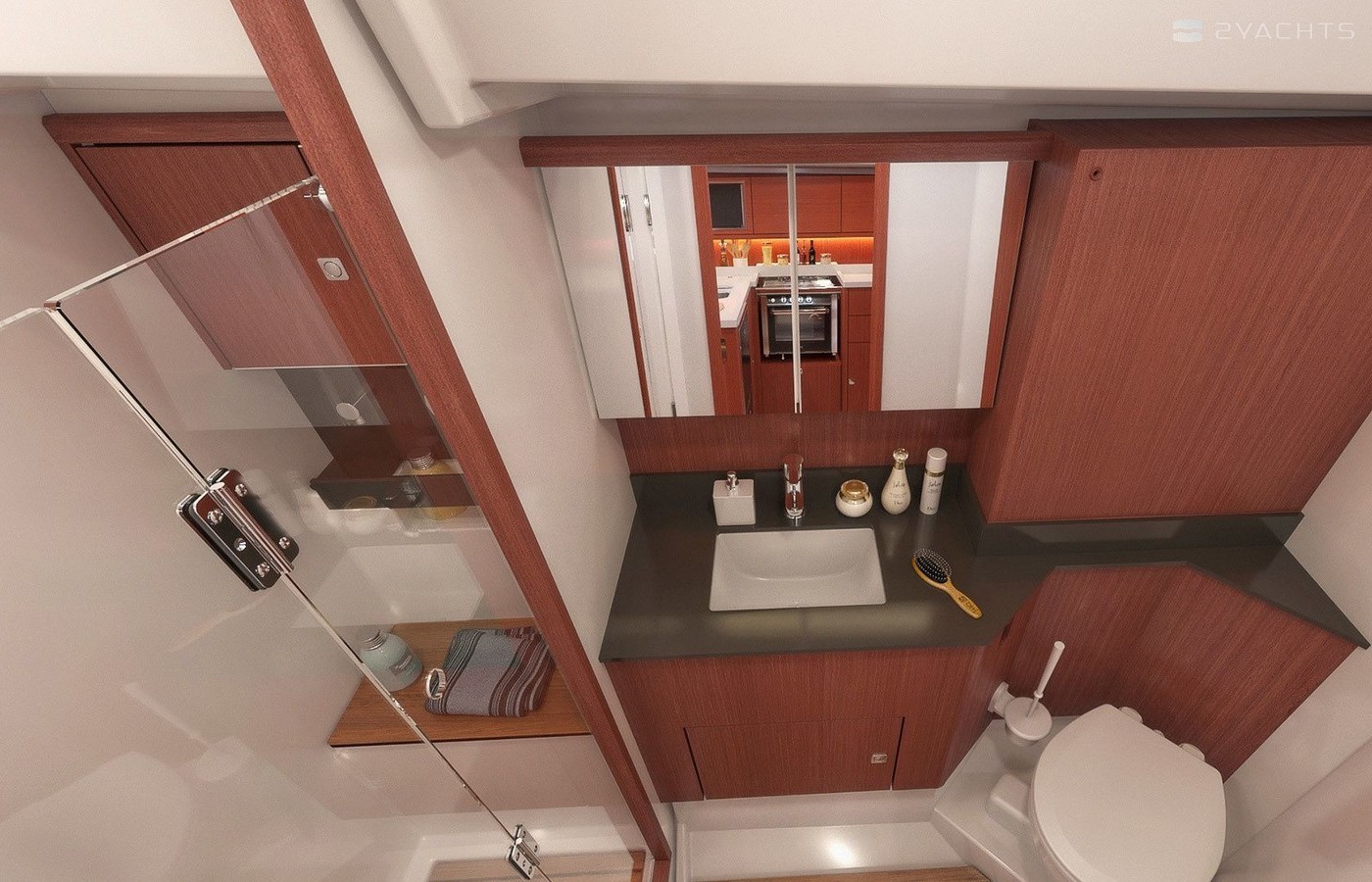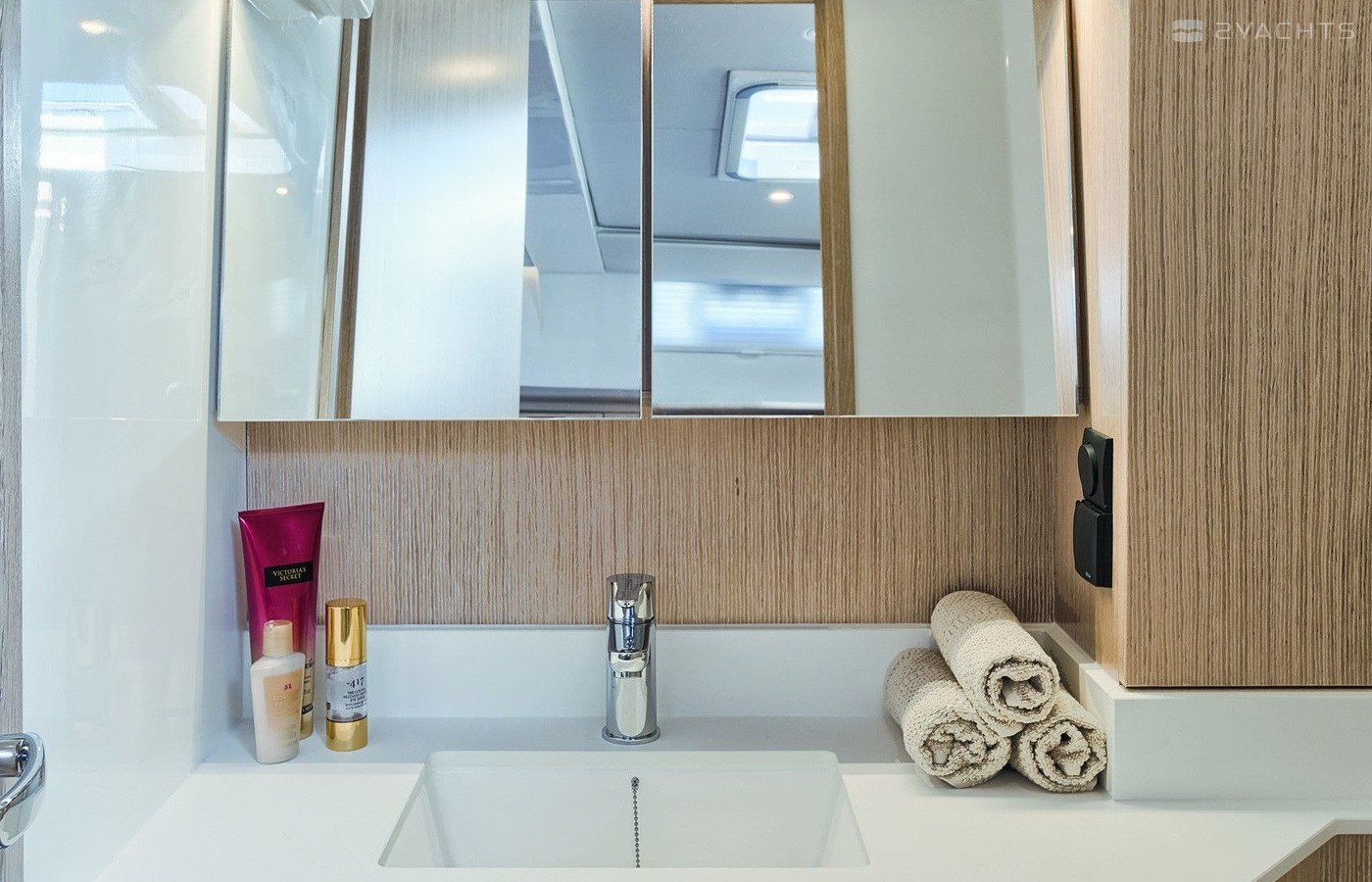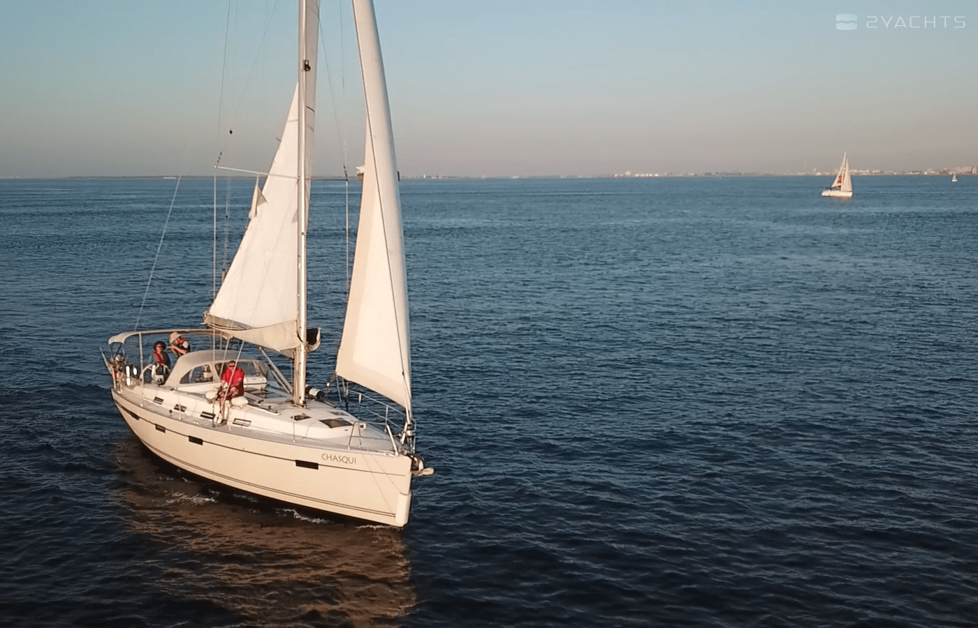 Boat equipment features classical mainsail, bimini and bow thruster. It also boasts an an audio system, outside speakers and inside speakers. The fully-equipped galley includes an oven, cooker, sink and kitchen utensils.